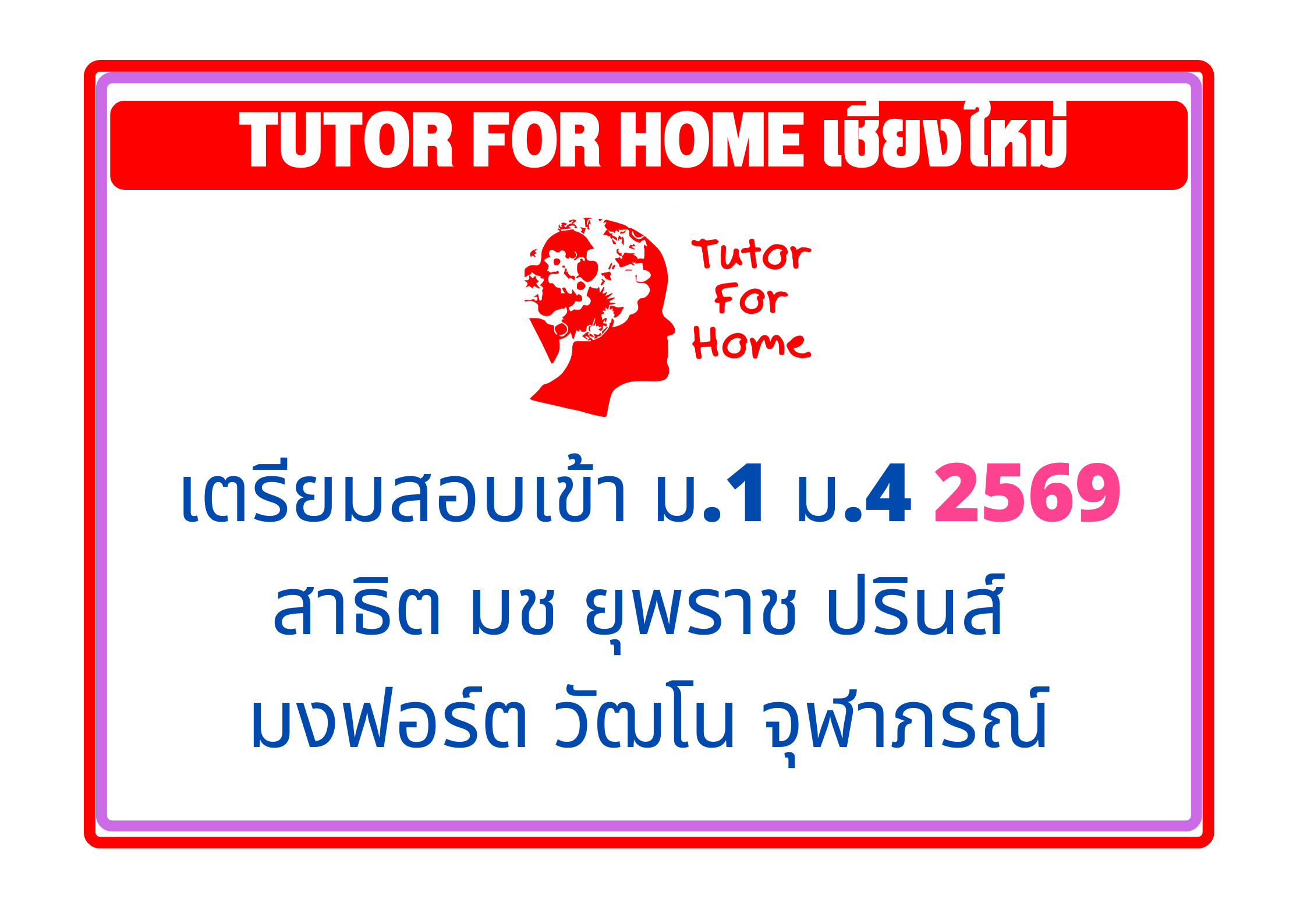 Tutor for home เชียงใหม่ เปิดสอนพิเศษ ป.1-ม.6 เชียงใหม่