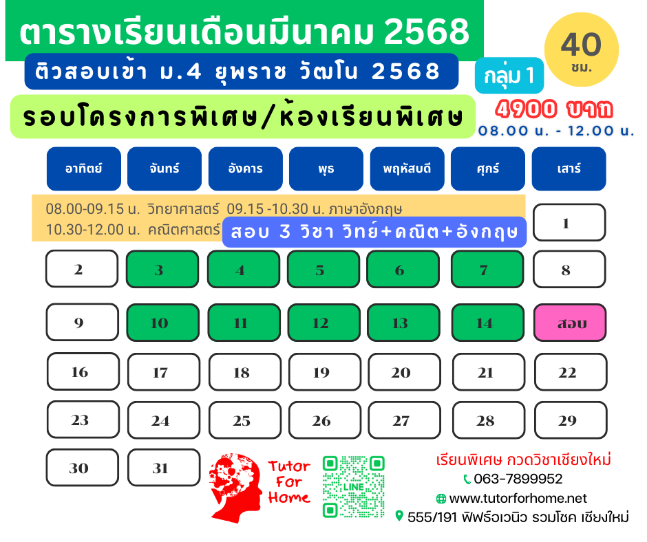 เรียนพิเศษเชียงใหม่ กวดวิชาเชียงใหม่ เตรียมสอบเข้าม.1 เตรียมสอบเข้าม.4 ยุพราช วัฒโน สาธิตมช มงฟอร์ต 2567 ยุพราช วัฒโน 2567 รอบทั่วไป มีนาคม 2567 เรียนเทอม 1/2567 เชียงใหม่ 2567 เรียนพิเศษประถมเชียงใหม่ เรียนพิเศษมัธยมเชียงใหม่ 2567 เชียงใหม่ เทอม 2/2567 เชียงใหม่ ประถมเชียงใหม่ มัธยมเชียงใหม่ เตรียมสอบเข้า ม.1 เชียงใหม่ ยุพาชรอบทั่วไป มีนาคม 2568 สอบเข้า ม.4 โครงการพิเศษ ม.1