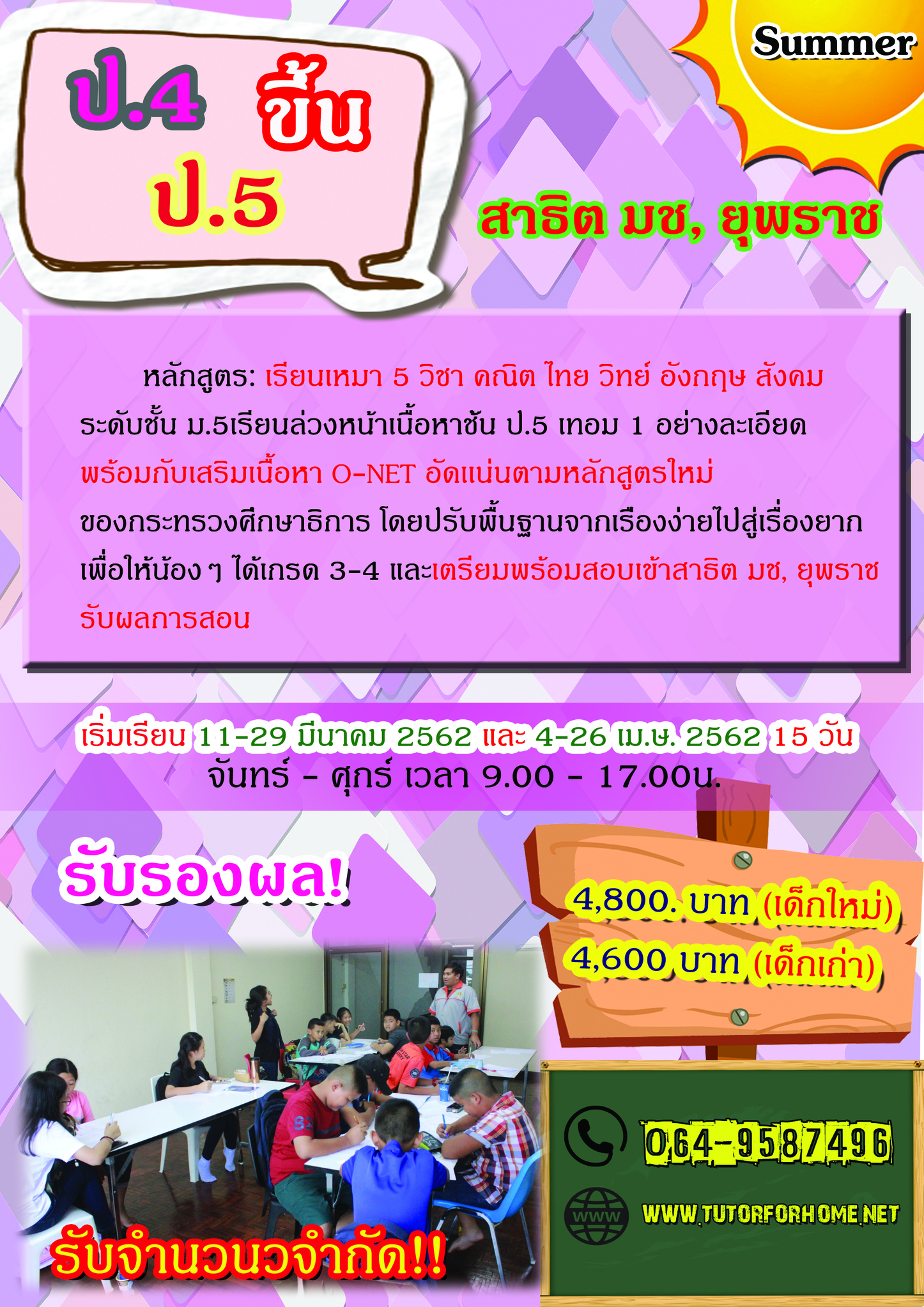 เรียนเพิ่มเกรด ป.2 ป.3 ป.4 ป.5 ป.6 พิษณุโลก เรียนพิเศษพิษณุโลก