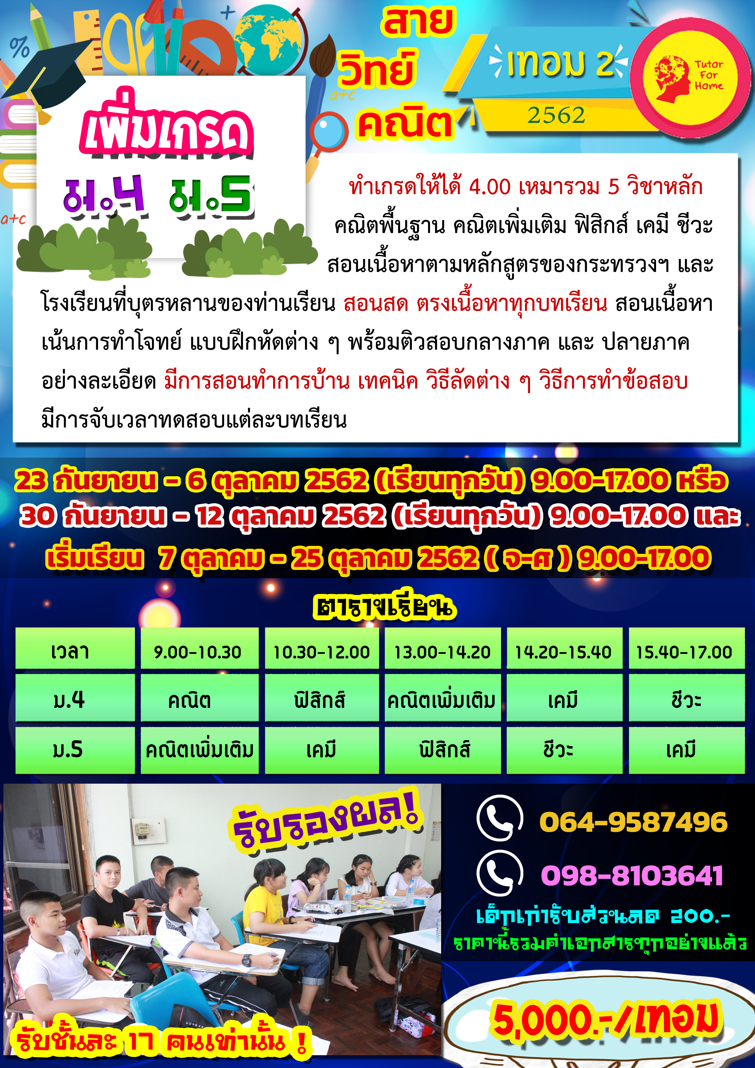 คอร์สเรียนเพิ่มเกรด ม.4 ม.5 สายวิทย์คณิต 1/2567