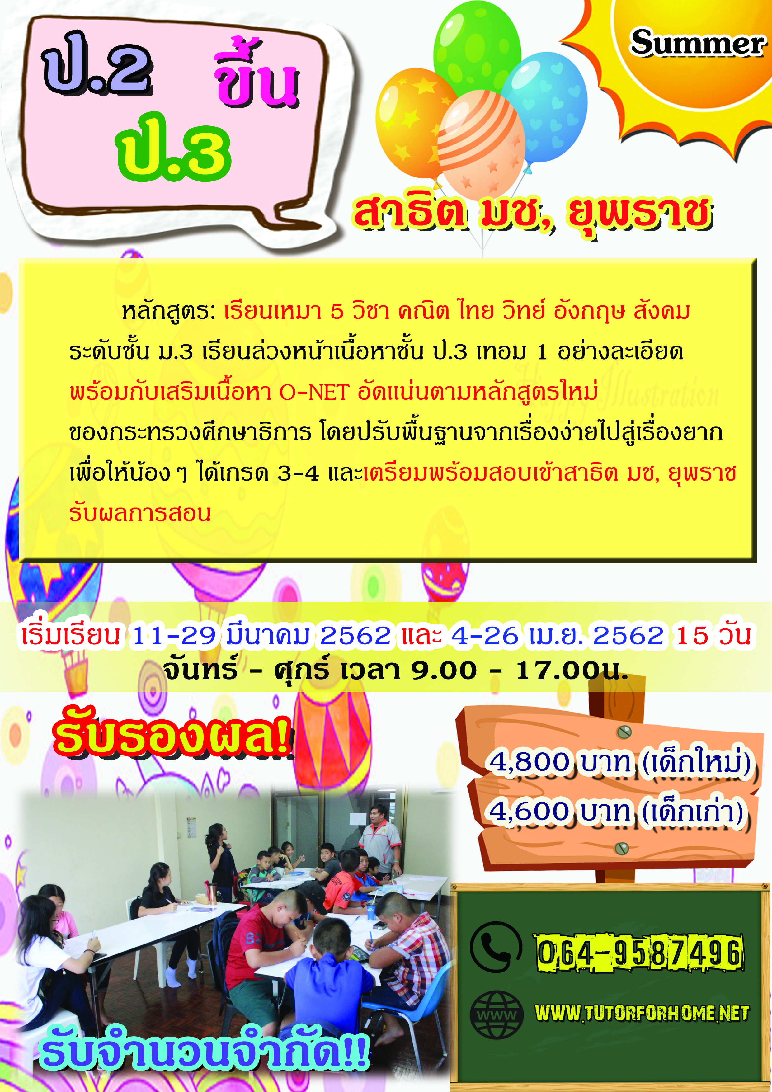 เรียนเพิ่มเกรด ป.2 ป.3 ป.4 ป.5 ป.6 พิษณุโลก เรียนพิเศษพิษณุโลก
