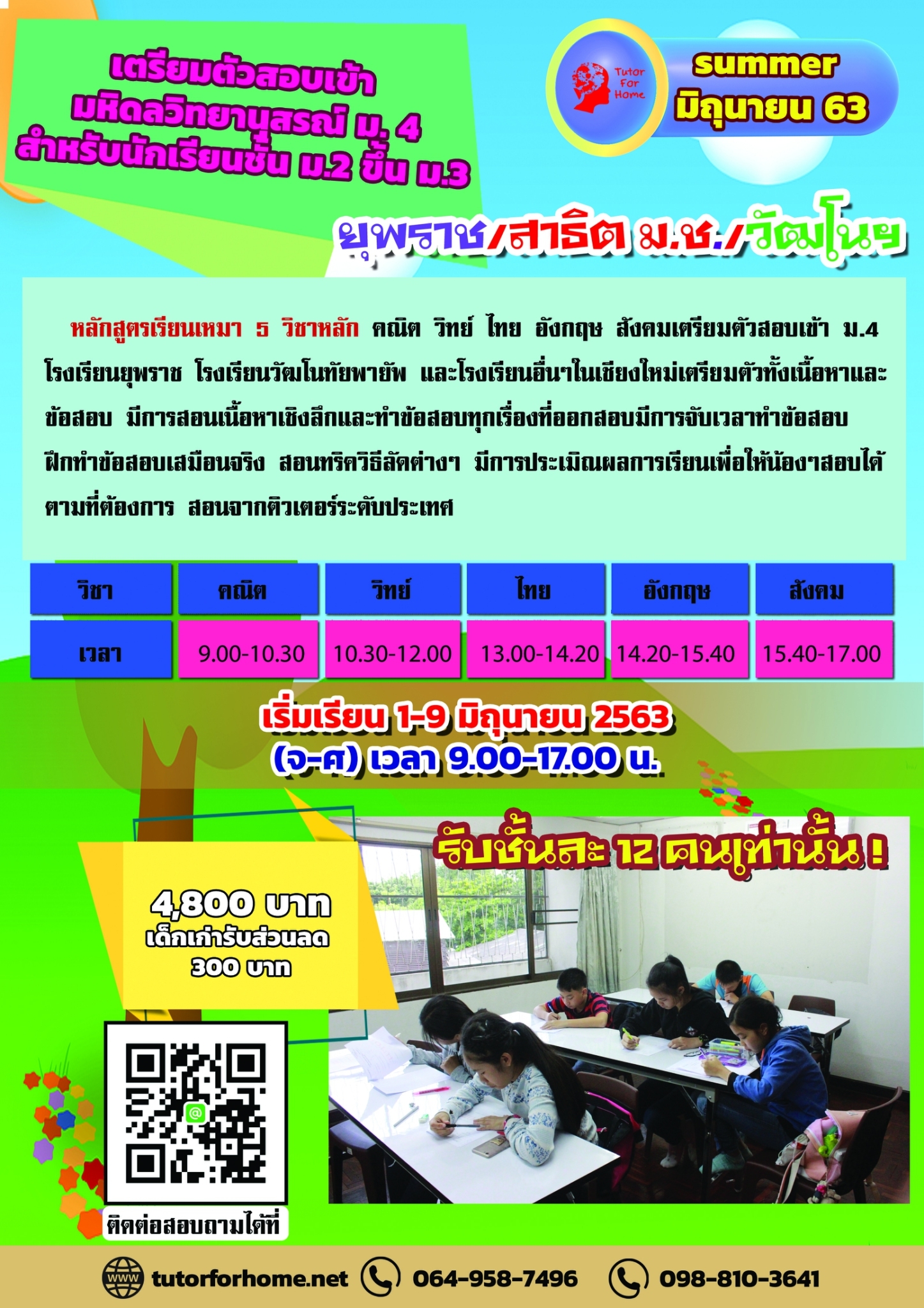 เรียนพิเศษเชียงใหม่เรียนเพิ่มเกรด เตรียมสอบเข้าม.1 ม4 เทอม เทอม1/2567
