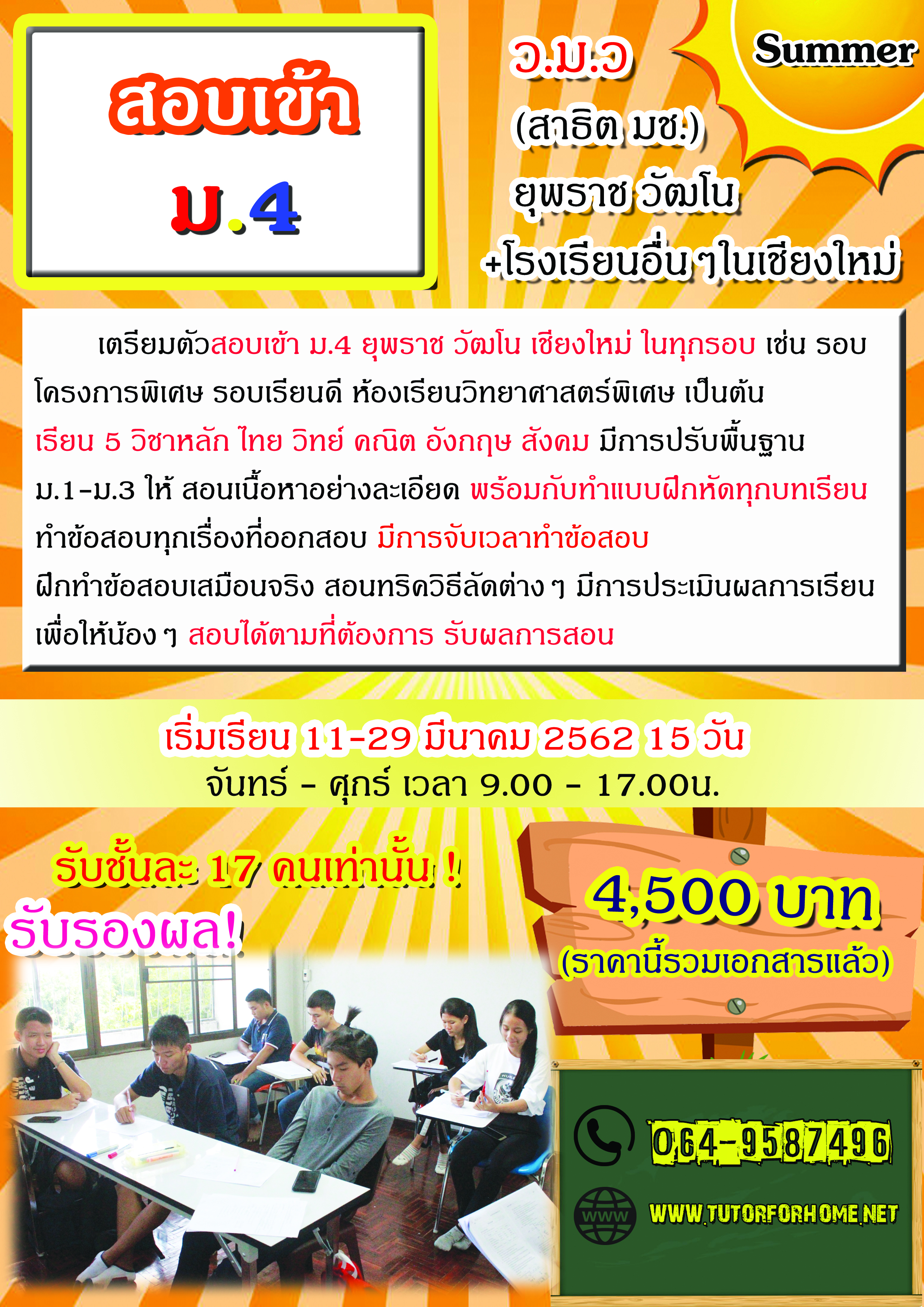 Tutor for home เรียนพิเศษ กวดวิชา เชียงใหม่