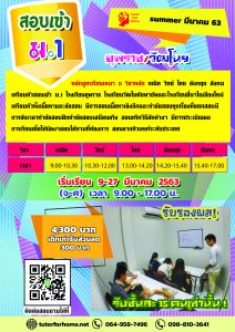 สอบเข้าม1 Summer สอบเข้า ม.1 ยุพราช 2563