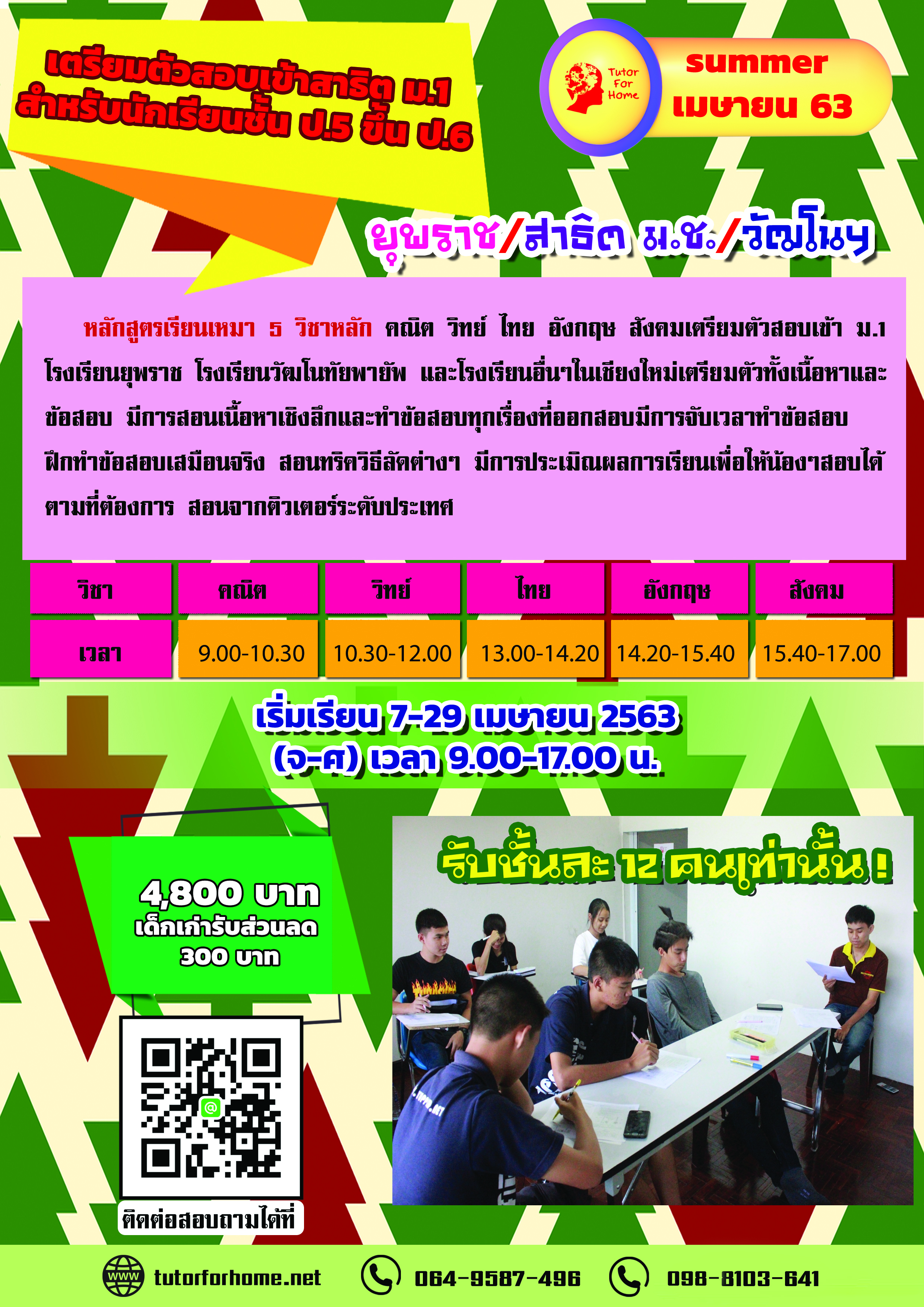 เรียนพิเศษเชียงใหม่เรียนเพิ่มเกรด เตรียมสอบเข้าม.1 ม4 เทอม เทอม1/2567