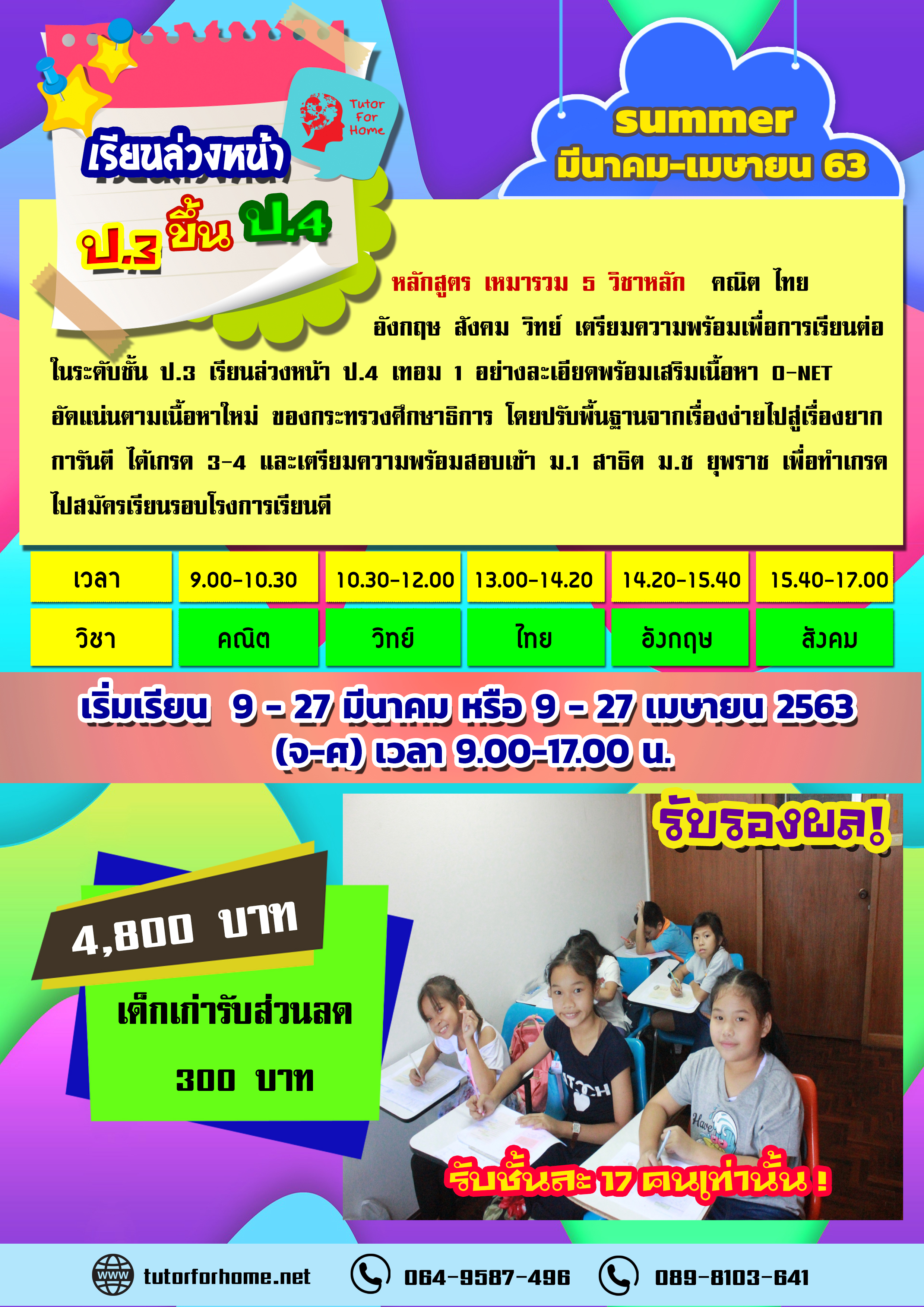 คอร์สเรียนเพิ่มเกรด เทอม1/2568 ป.1 ป.2 ป.3 ป.4 2566