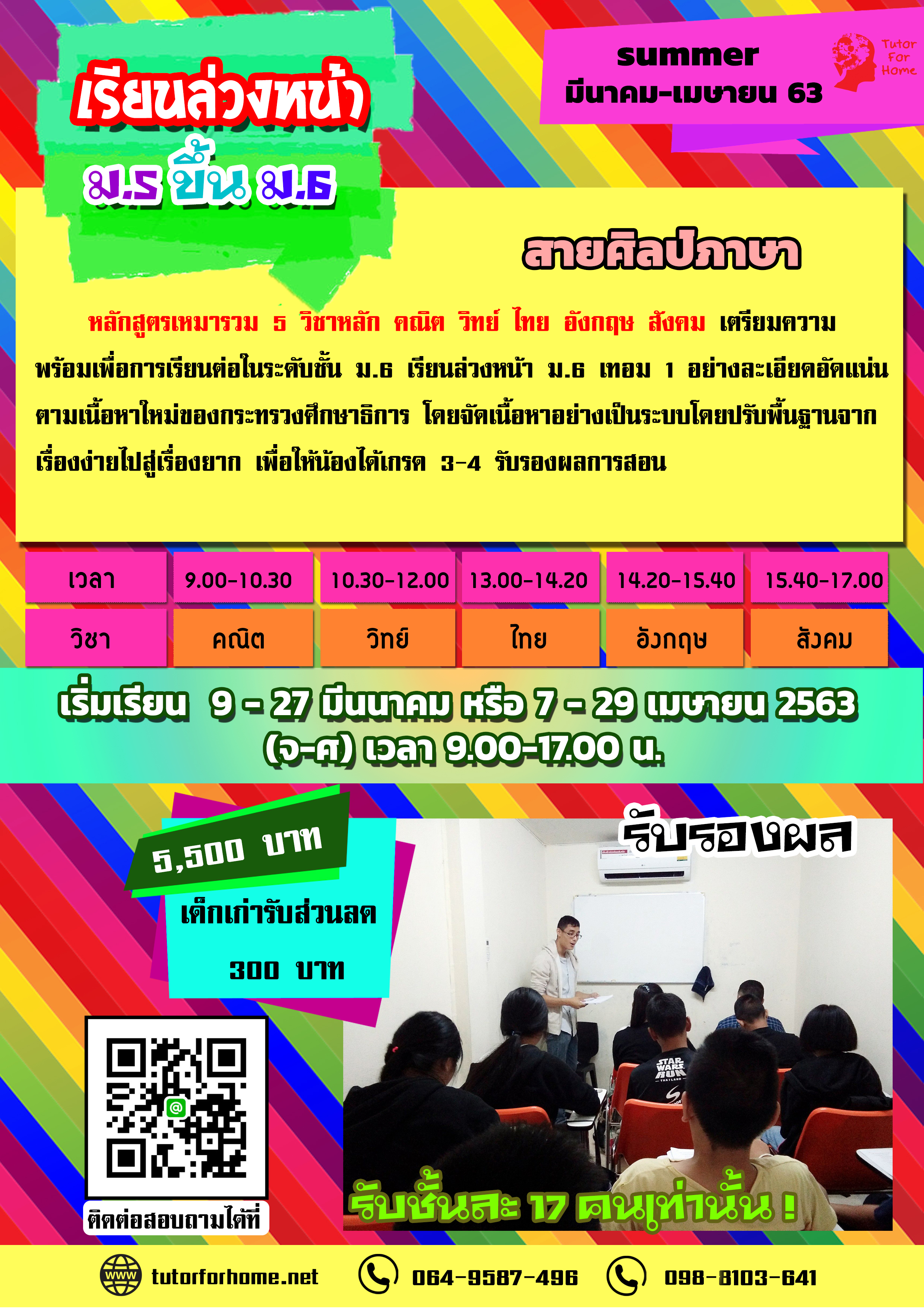 เรียนล่วงหน้า ม5 ม6 สายศิลป์ภาษา มีนาคม