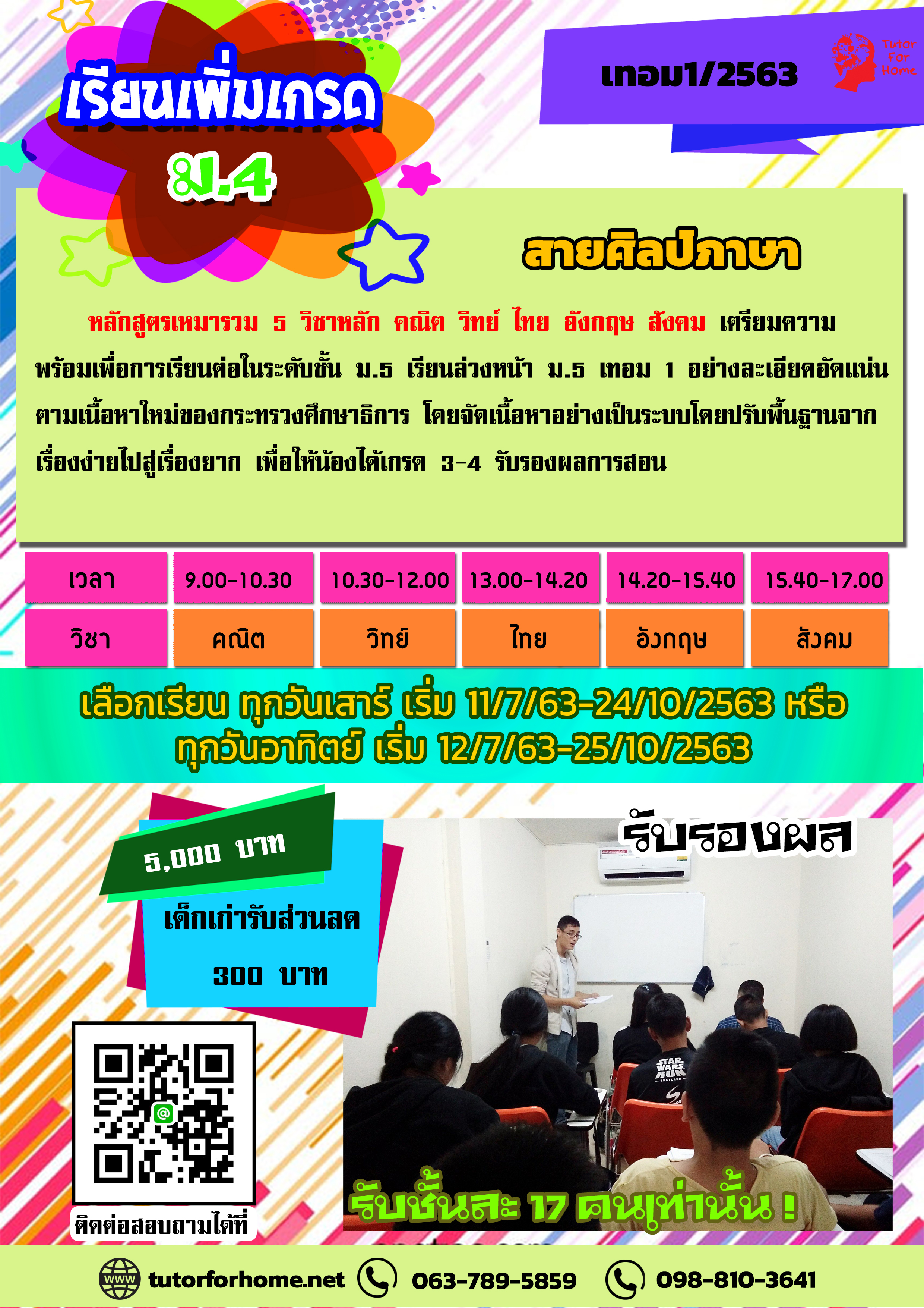 เรียนเพิ่มเกรด ม4 สายศิลป์ภาษา