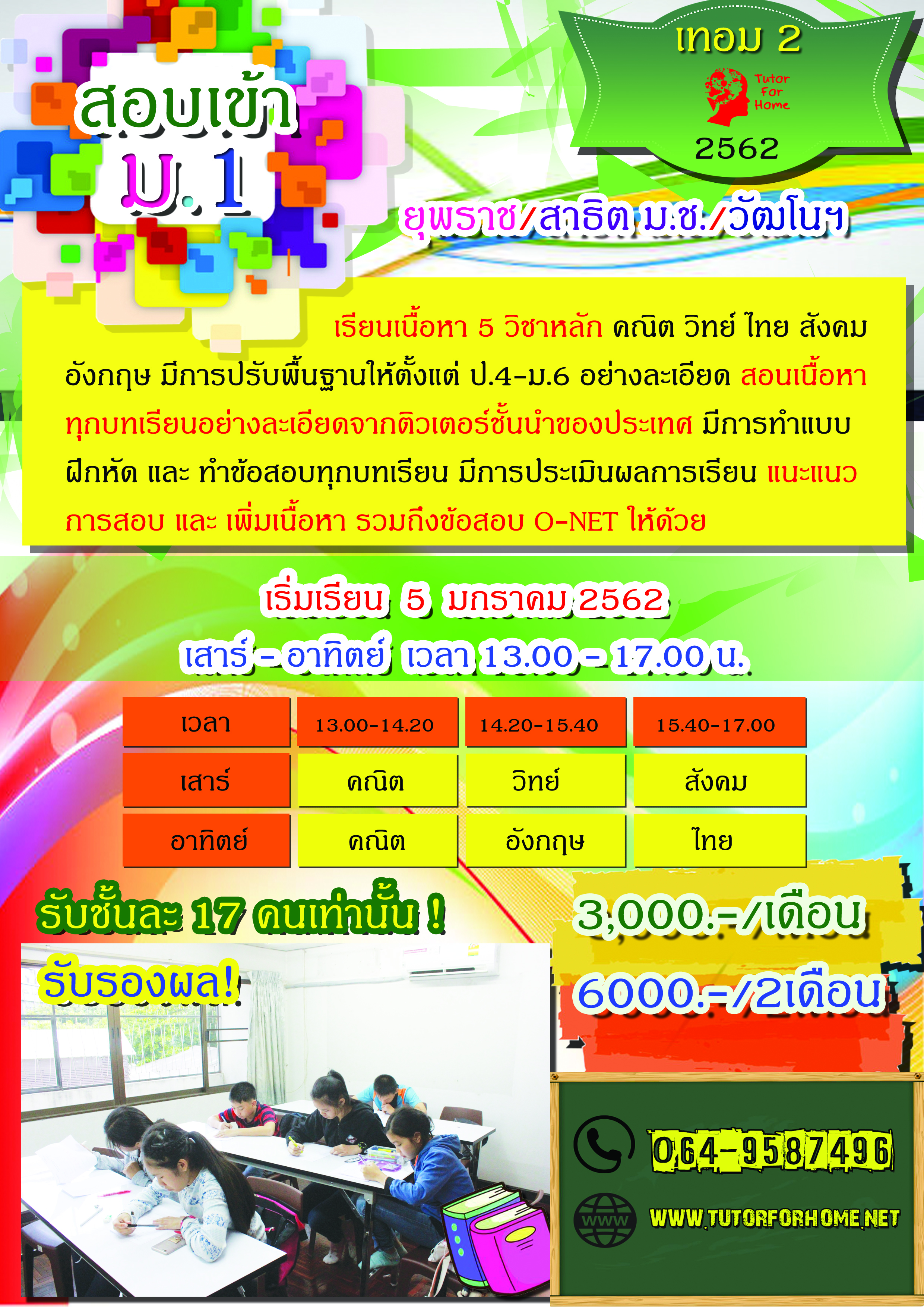 เรียนเพิ่มเกรด ป.2 ป.3 ป.4 ป.5 ป.6 พิษณุโลก เรียนพิเศษพิษณุโลก