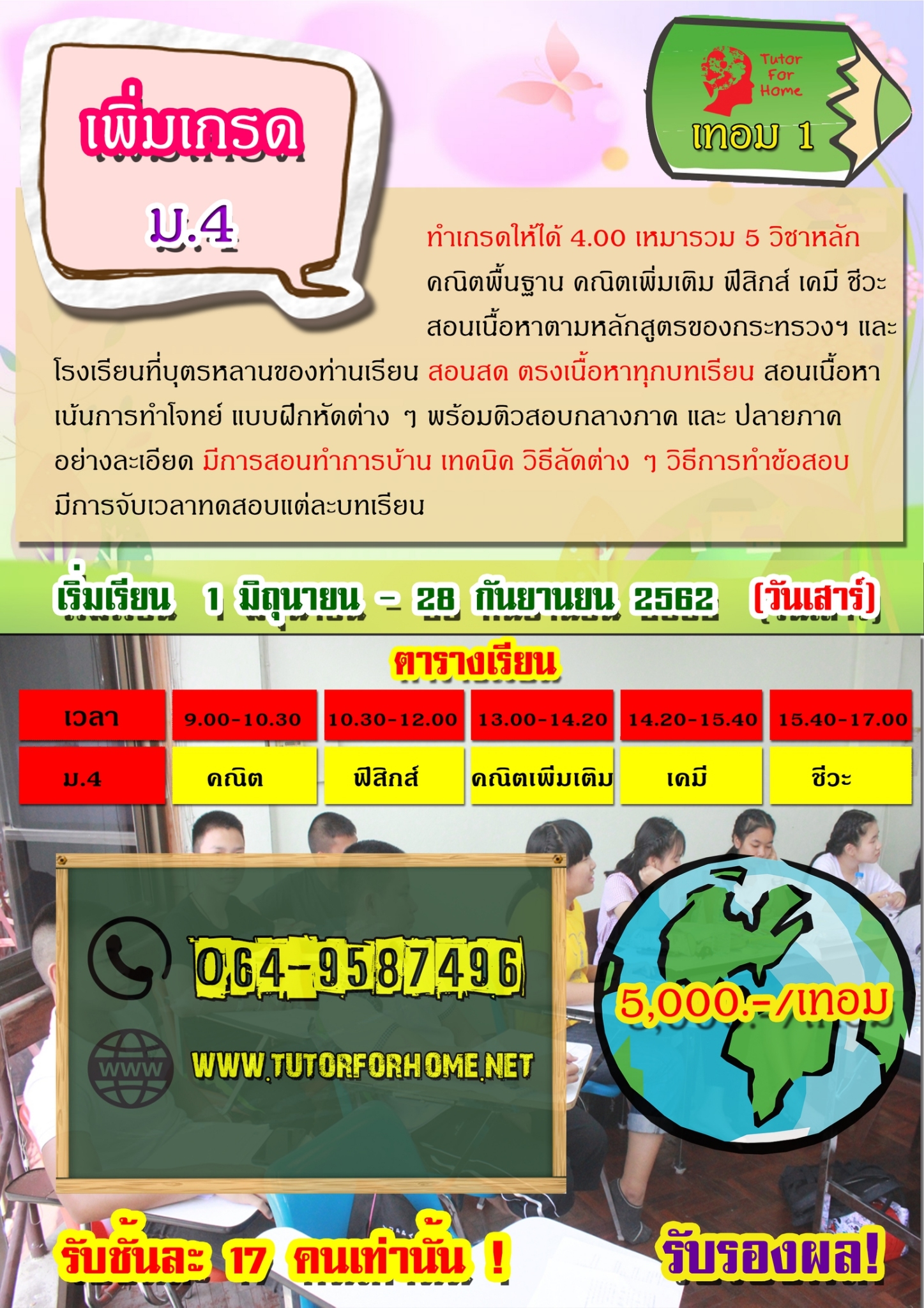 เรียนพิเศษเชียงใหม่เรียนเพิ่มเกรด เตรียมสอบเข้าม.1 ม4 เทอม เทอม1/2568