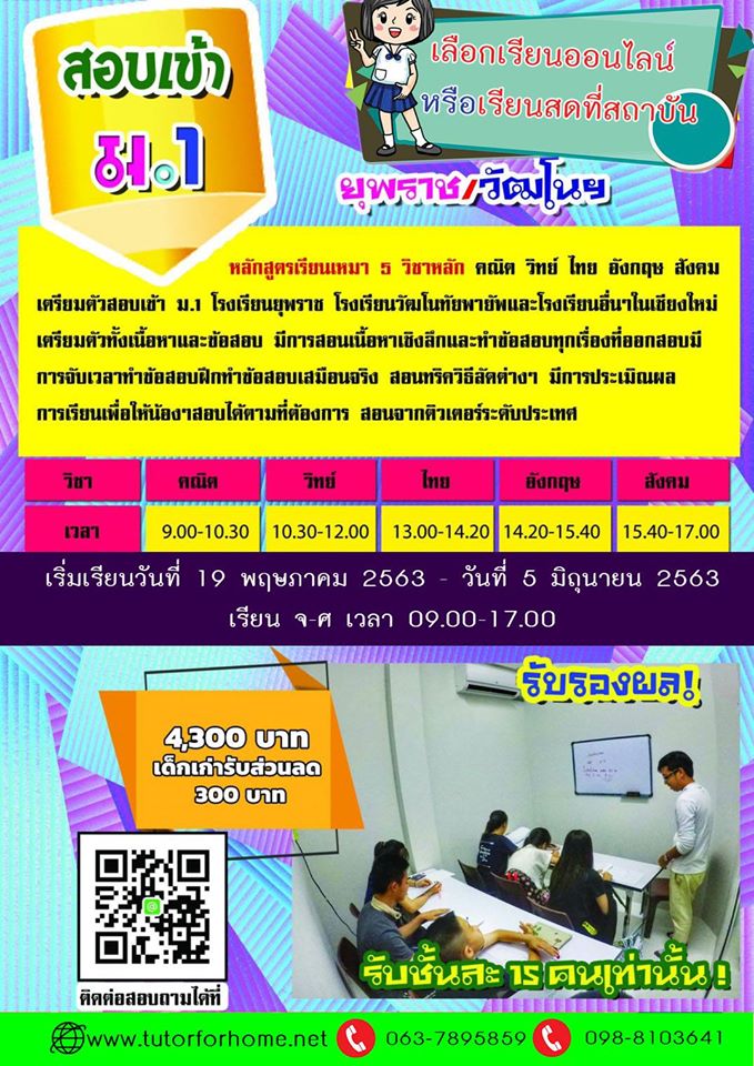 เรียนพิเศษเชียงใหม่เรียนเพิ่มเกรด เตรียมสอบเข้าม.1 ม4 เทอม เทอม1/2567