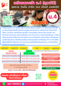 เตรียมสอบเข้าม.4 2568-2569