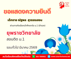 เตรียมสอบเข้า ม.1 ยุพราช วัฒโน 2567-2568