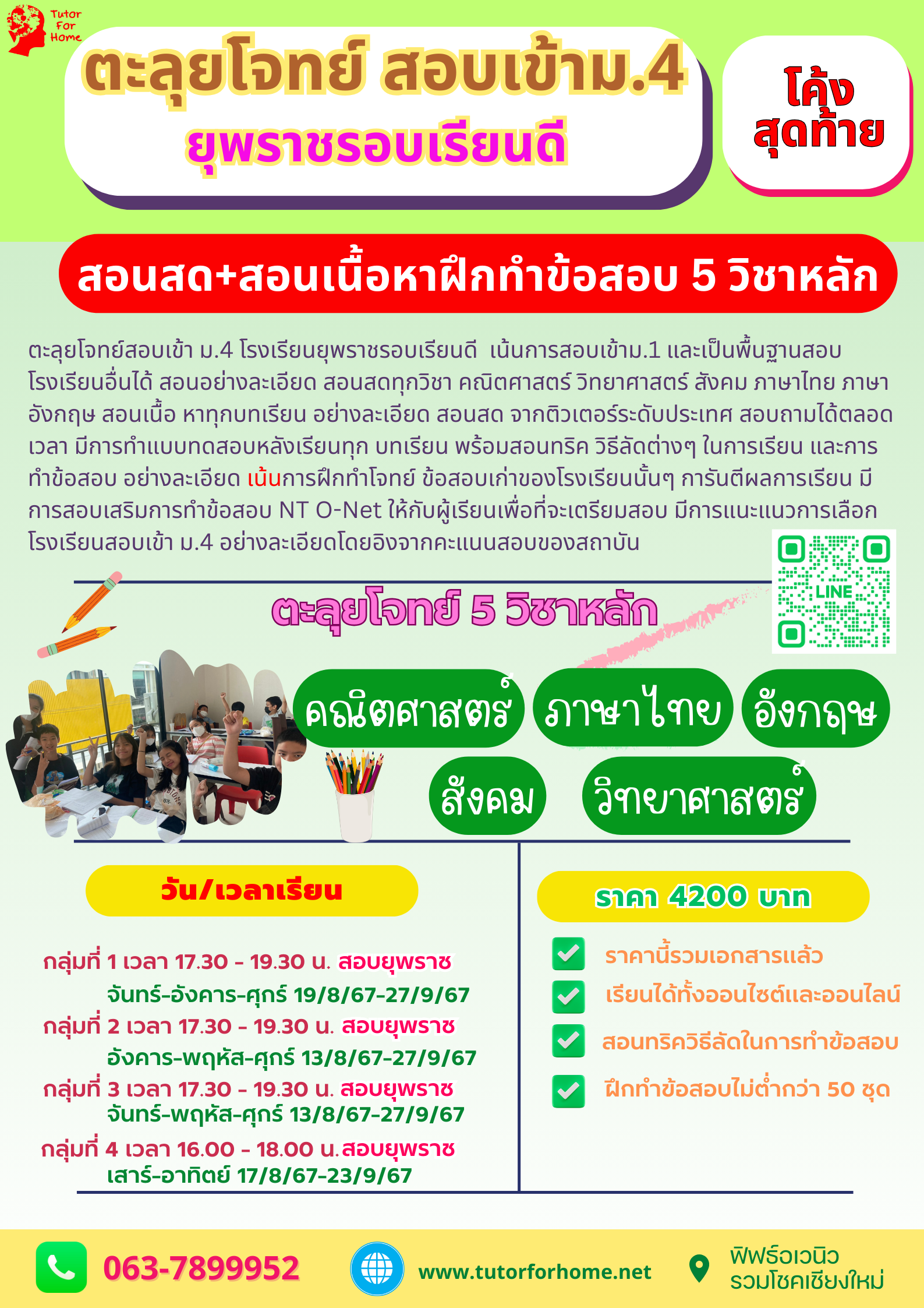 เตรียมสอบเข้า ม.4 ยุพาชรอบโครงการเรียนดี 2567-2568