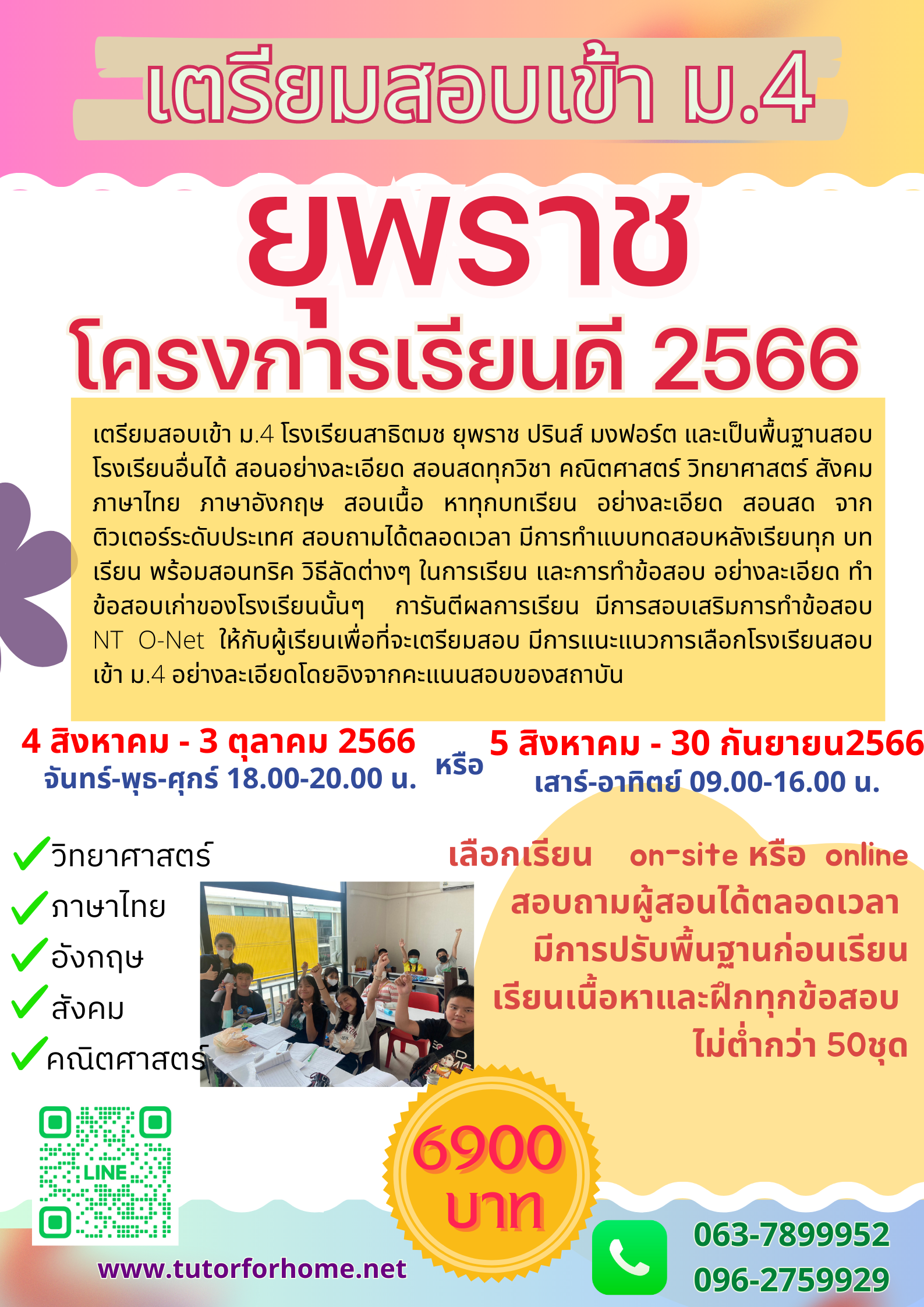 เตรียมสอบเข้า ม.4 โครงการเรียนดี ยุพราชวิทยาลัย 2566 ยุพราชโครงการเรียนกี 2566 เรียนำิเศษเชียงใหม่ กวดวิชาเชียงใหม่