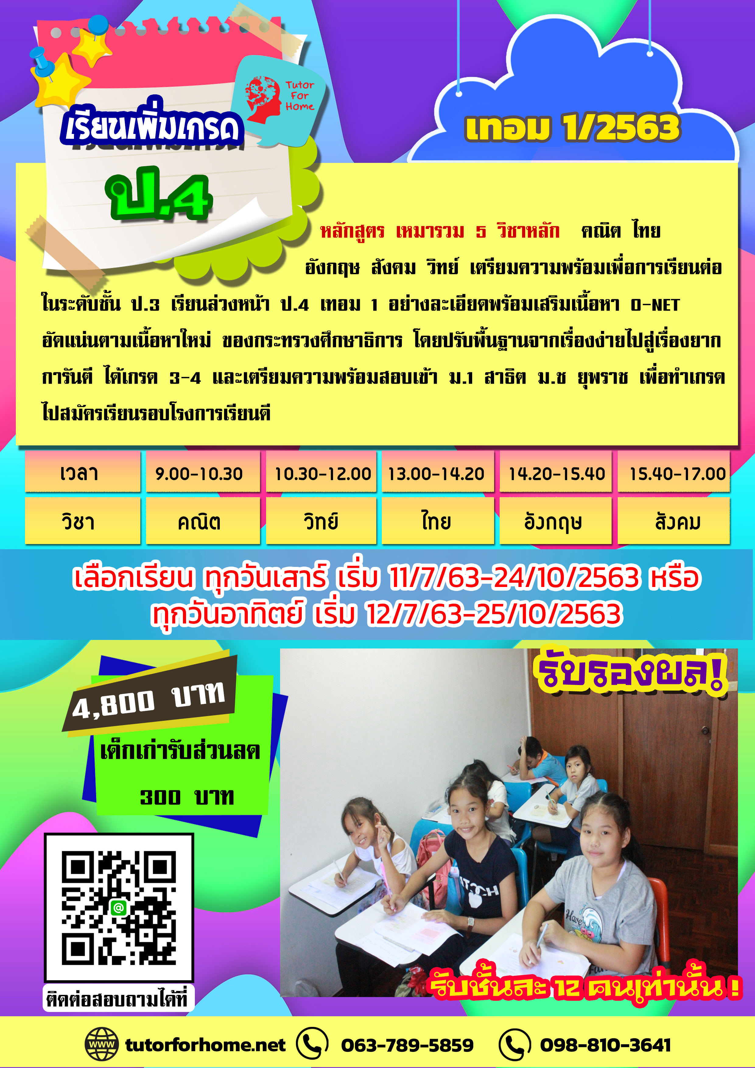 คอร์สเรียนเพิ่มเกรด เทอม1/2568 ป.1 ป.2 ป.3 ป.4 2566