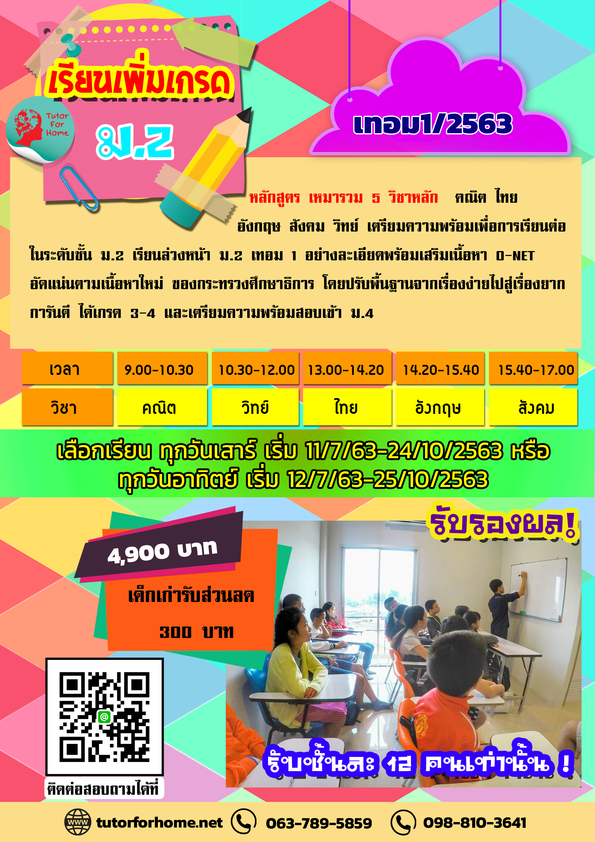 คอร์สเรียนเพิ่มเกรด ม.1 ม.2 ม.3 เทอม 1/2567