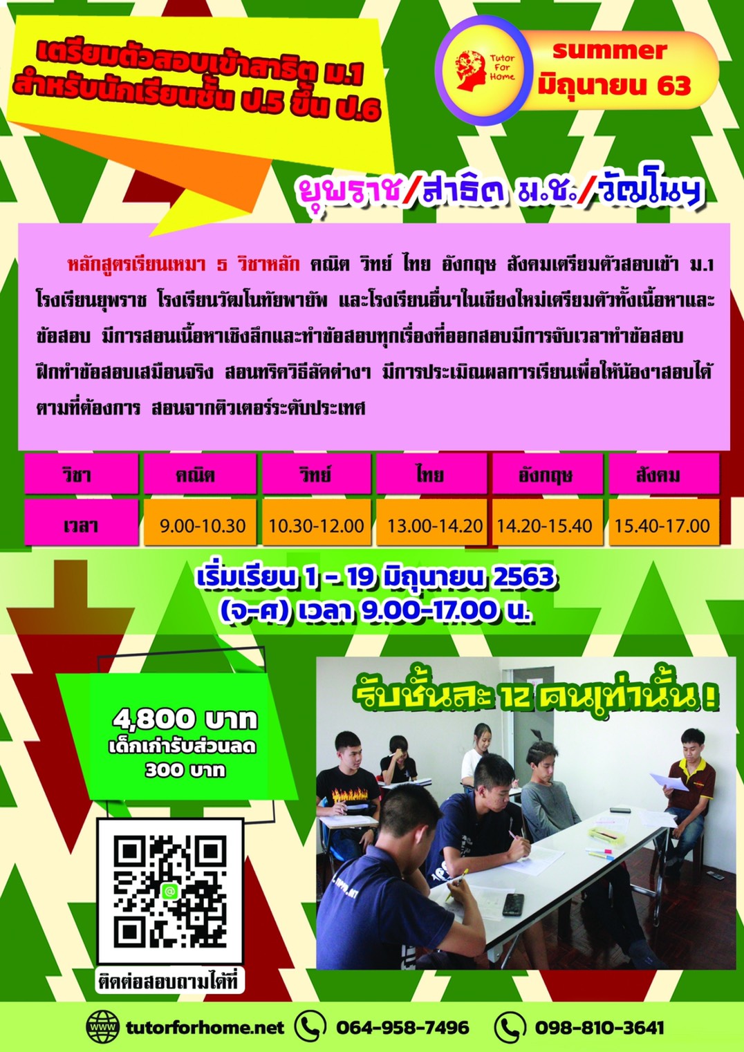 เรียนพิเศษเชียงใหม่เรียนเพิ่มเกรด เตรียมสอบเข้าม.1 ม4 เทอม เทอม1/2567
