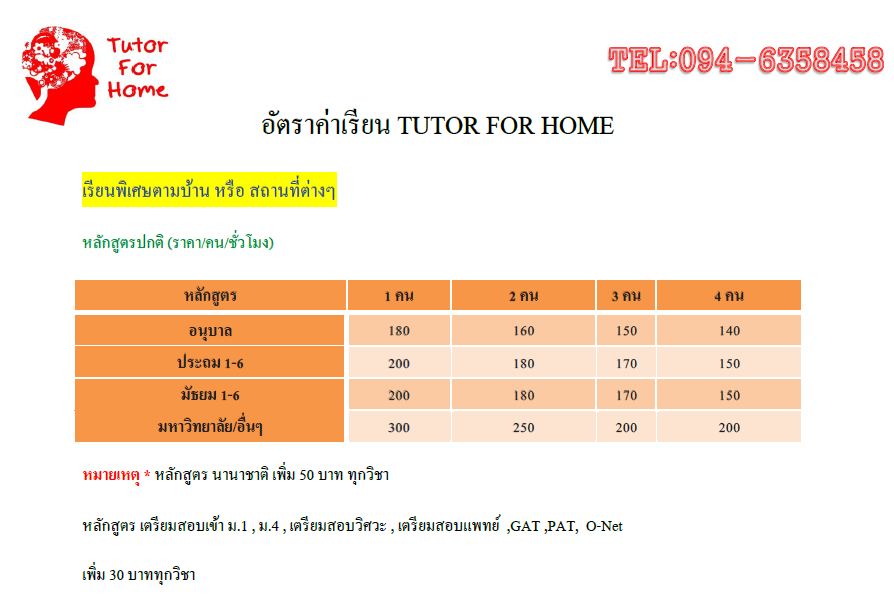 Tutor for home เรียนพิเศษ กวดวิชา เชียงใหม่