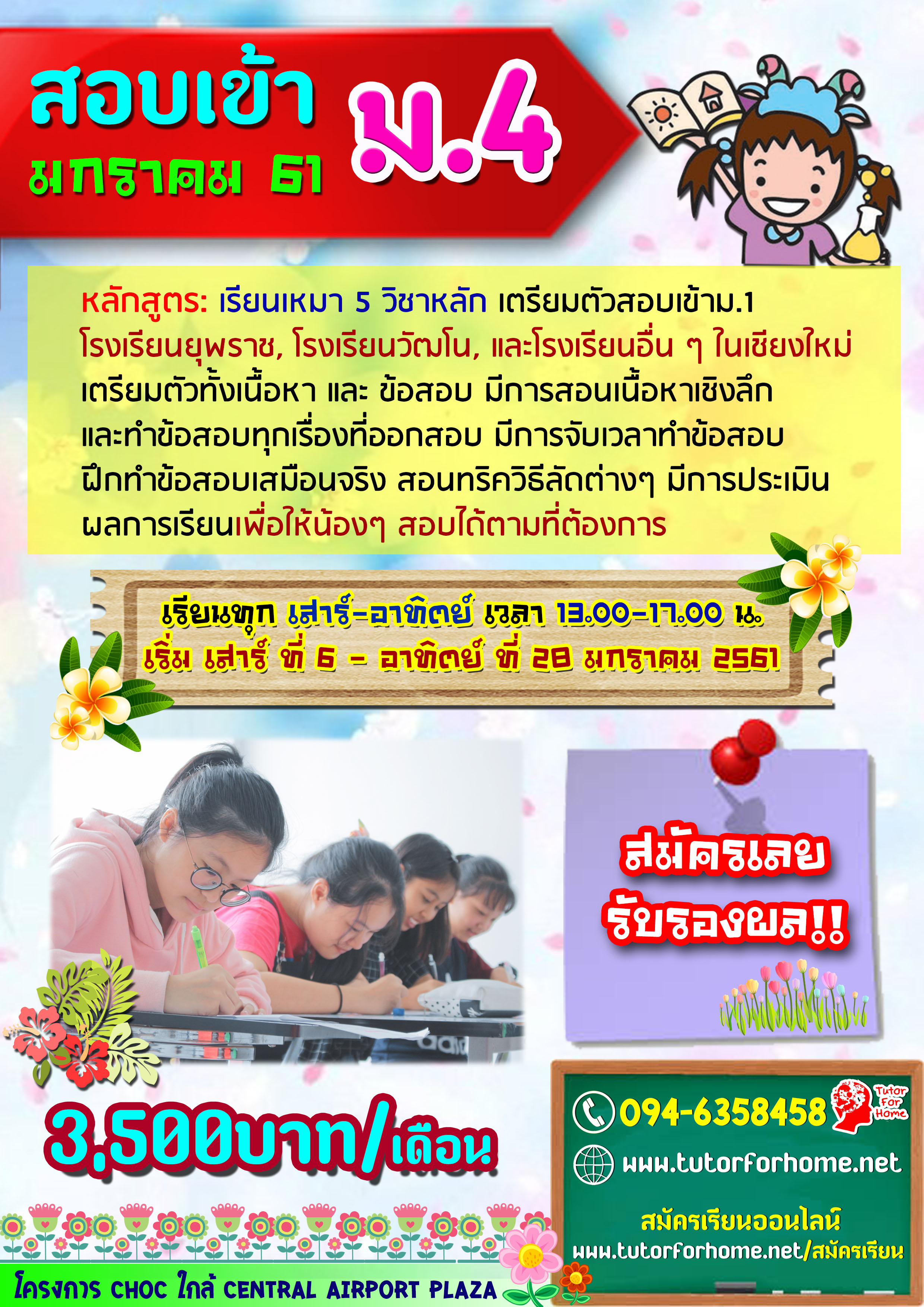 สอบเข้าม4 มกรา 2561 เรียนพิเศษเชียงใหม่ กวดวิชาเชียงใหม่