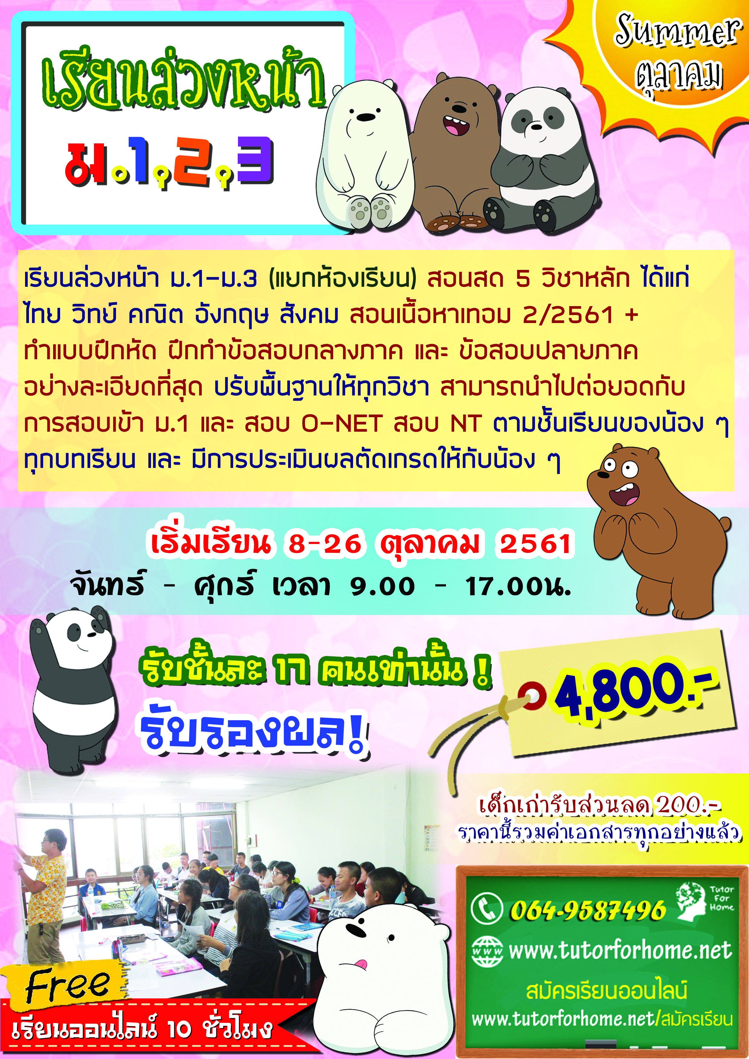 ม123 เรียนซัมเมอร์ ม.1 ม.2 ม.3 ตุลาคม 2561 เชียงใหม่ เรียนพิเศษเชียงใหม่ กวดวิชาเชียงใหม่ ตุลาคม 2561