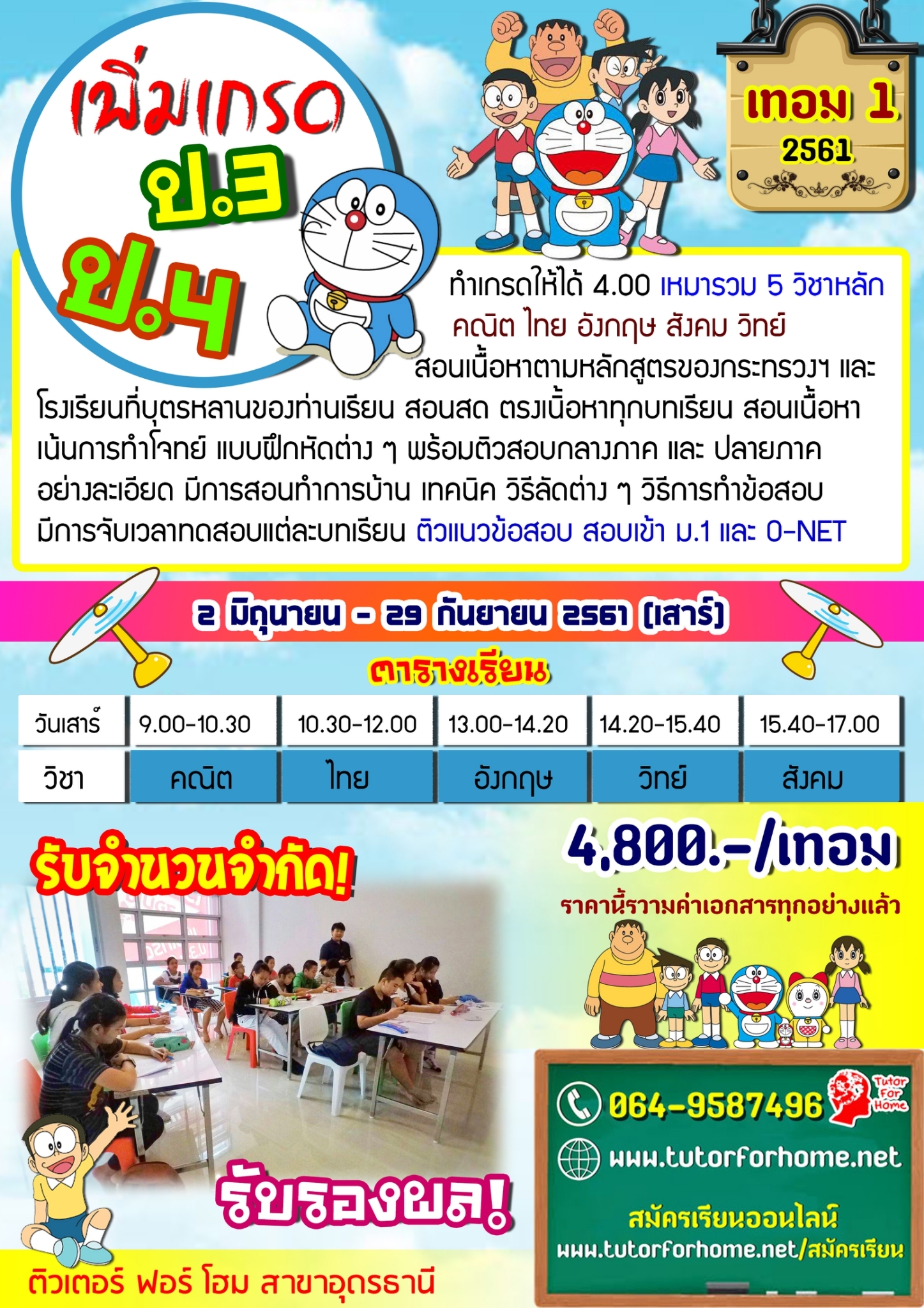 เรียนพิเศษอุดร เพิ่มเกรด ป.2-ป.6 2564-2565