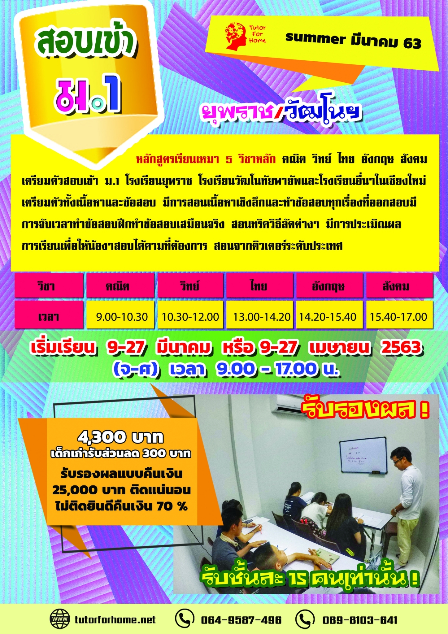 เตรียมสอบเข้า ม.1 ยุพราช วัฒโน 2567-2568