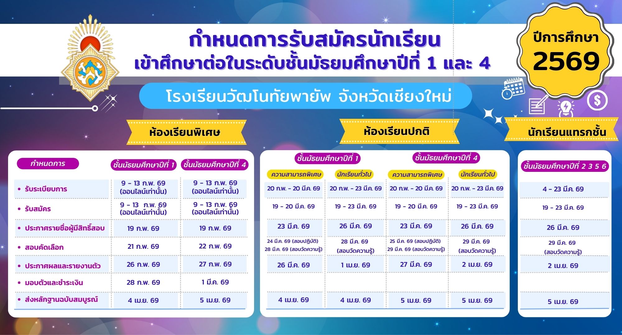 โรงเรียนยุพราชวิทยาลัย โรงเรียนวัฒโนทัยพายัพเชียงใหม่ รอบทั่วไป มีนาคม 2569