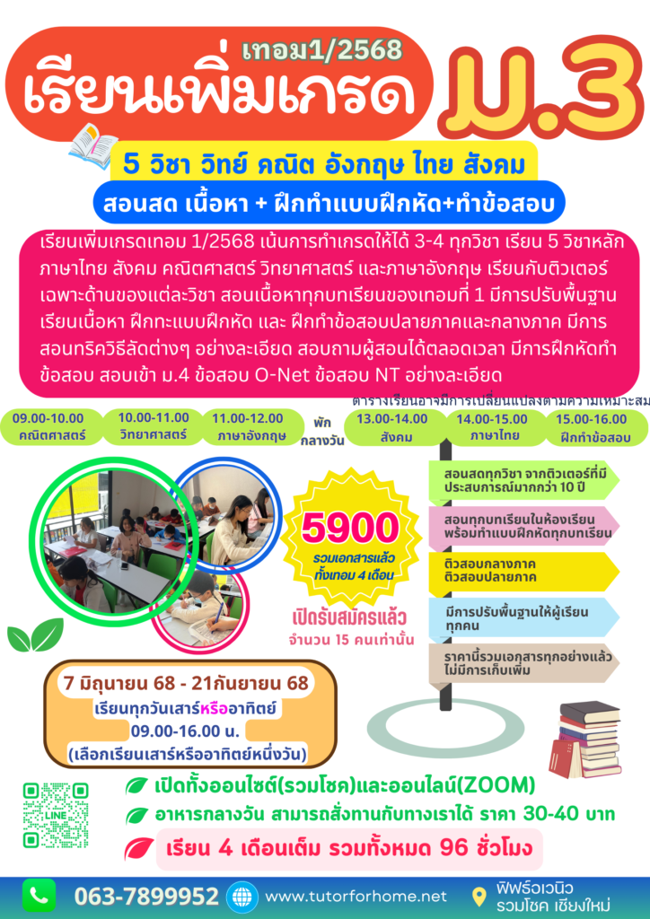 ติดต่อเรียน โทร 063-7899952 เรียนพิเศษเชียงใหม่ กวดวิชาเชียงใหม่ รับรองผลการเรียน เรียนได้เลยวันนี้
