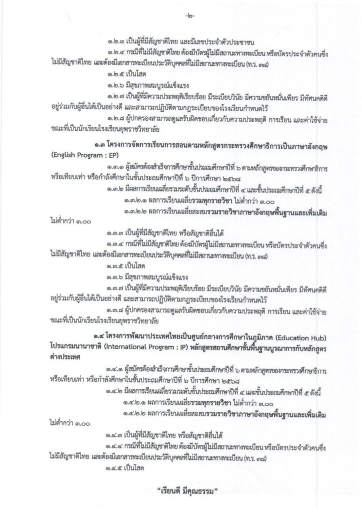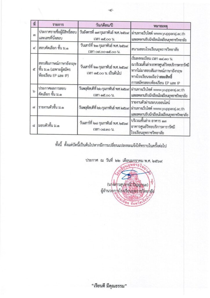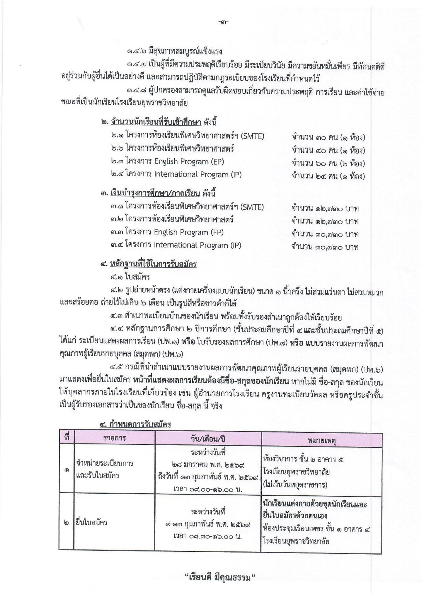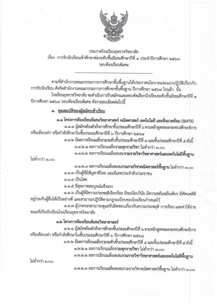 คุณสมบัติประกาศรับสมัครนักเรียน รอบห้องเรียนพิเศษ สอบเข้า ม.1 ยุพราชวิทยาลัย 2569