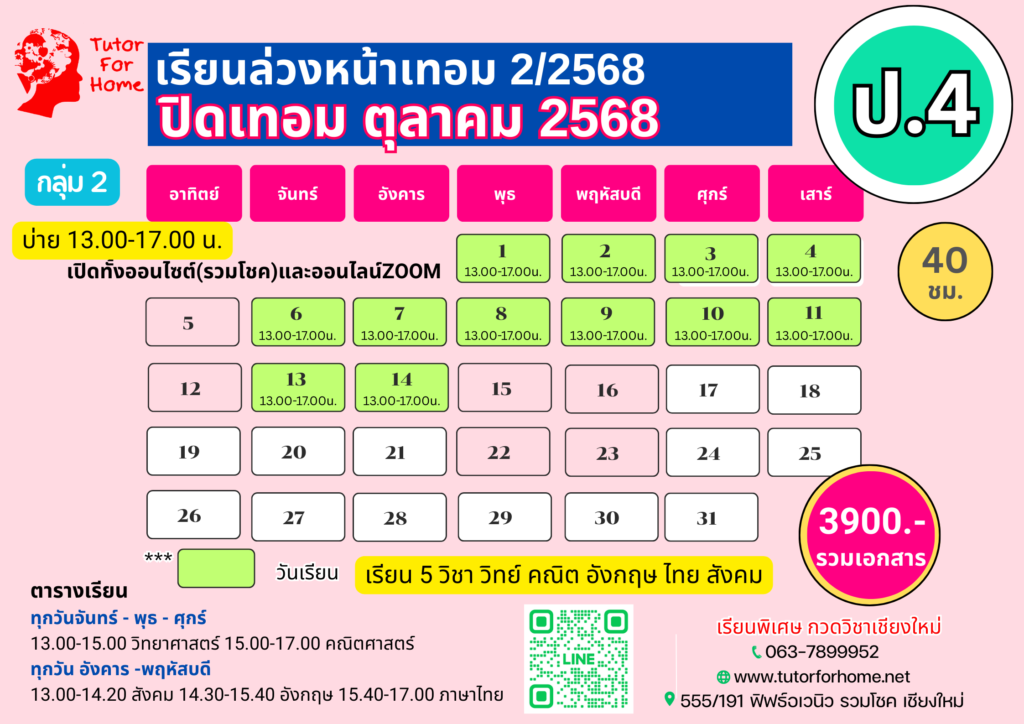 คอร์สเรียน ปิดเทอม ตุลาคม 2568 เรียนพิเศษเชียงใหม่