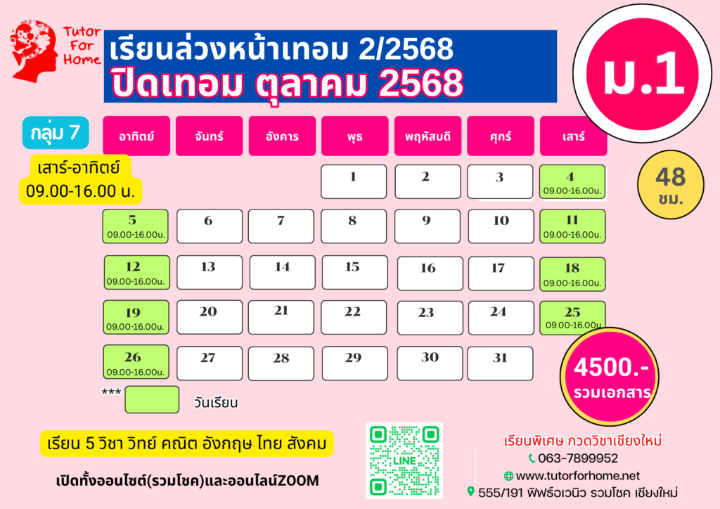 คอร์สเรียน ปิดเทอม ตุลาคม 2568 เรียนพิเศษเชียงใหม่