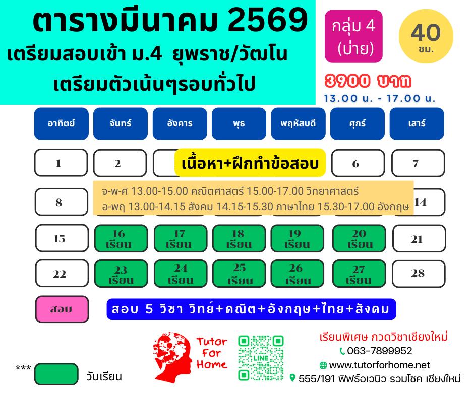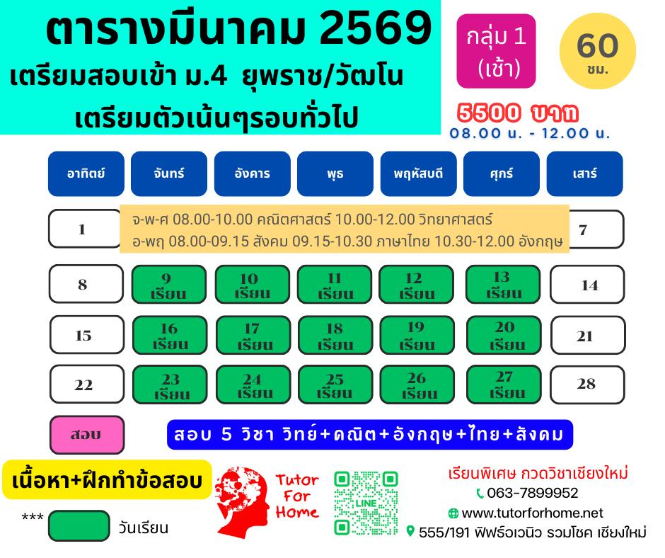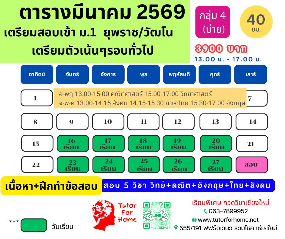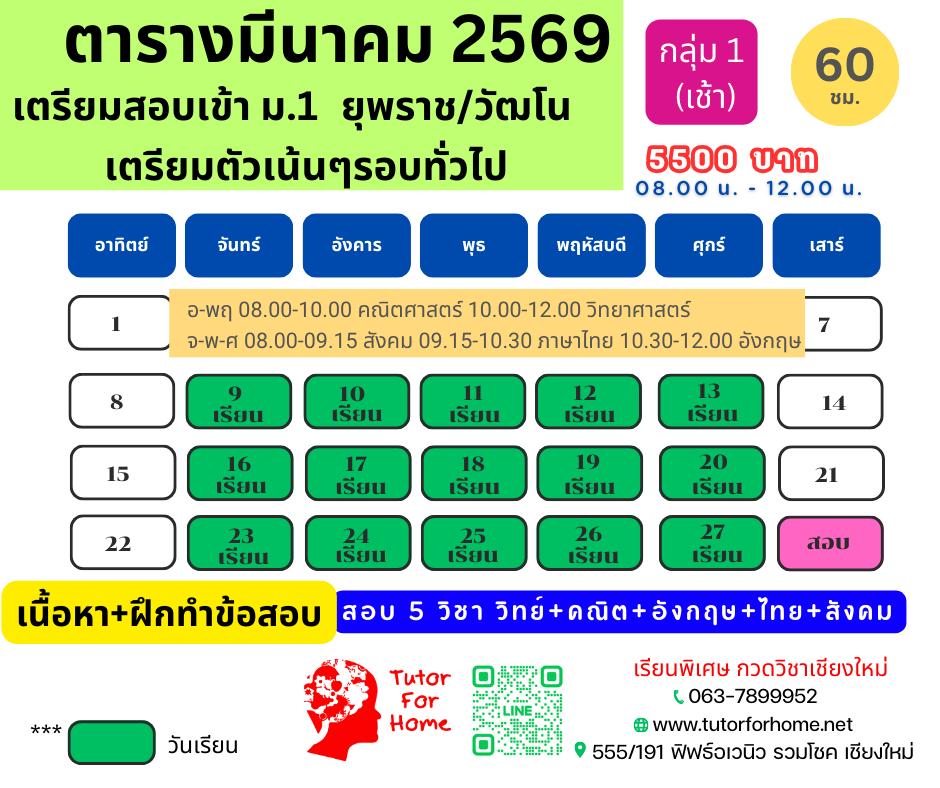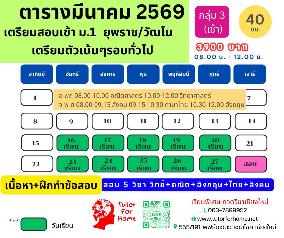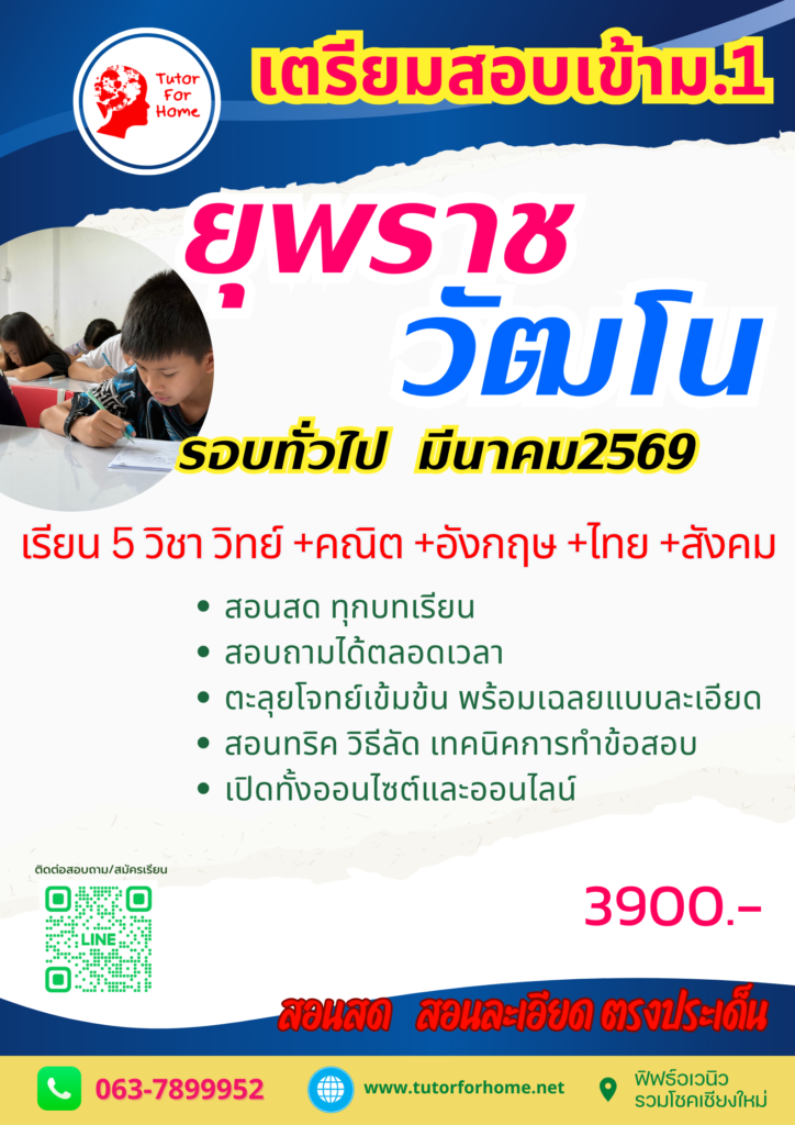 เตรียมสอบเข้า ม.1  โรงเรียนยุพราชเชียงใหม่ โรงเรียนวัฒโนทัยพายัพเชียงใหม่ รอบทั่วไป มีนาคม 2569
