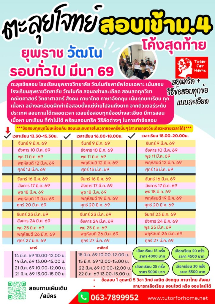 เตรียมสอบเข้า ม.1 ม.4 ยุพราช วัฒโน รอบทั่วไป 2569