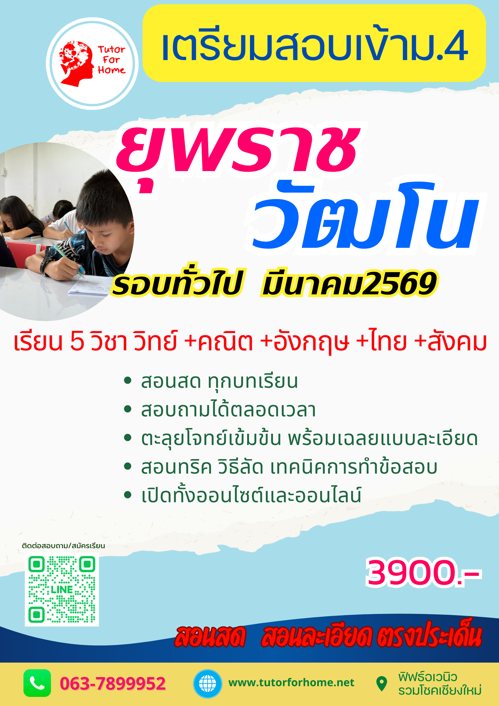 เตรียมสอบเข้า ม.1  โรงเรียนยุพราชเชียงใหม่ โรงเรียนวัฒโนทัยพายัพเชียงใหม่ รอบทั่วไป มีนาคม 2569