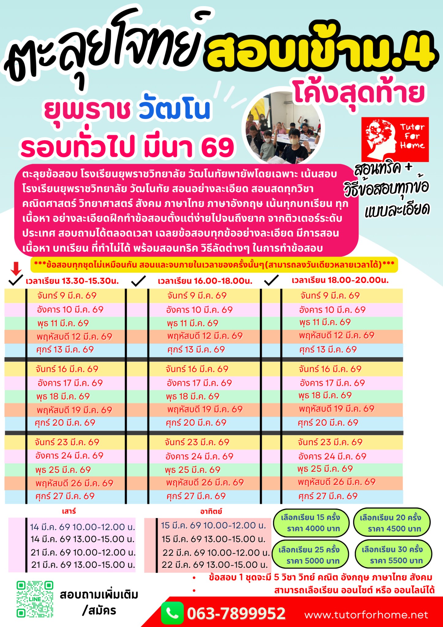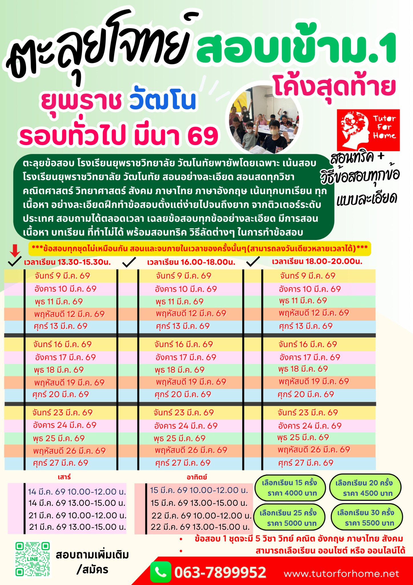 เตรียมสอบเข้า ม.1 ม.4 ยุพราช วัฒโน รอบทั่วไป 2569
