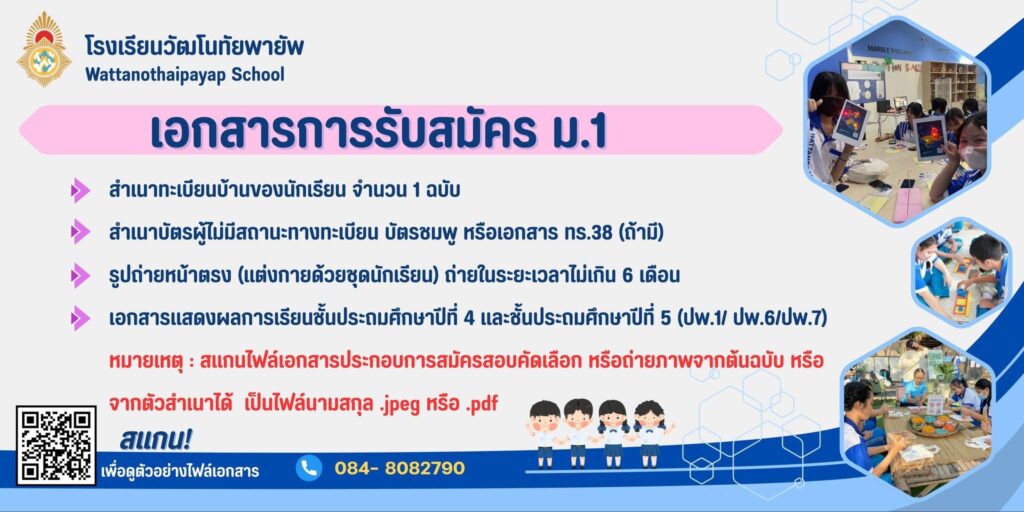 กำหนดการสอบเข้า ม.1 ม.4 โรงเรียนวัฒโนทัยพายัพ รอบห้องเรียนพิเศษ กุมภาพันธ์ 2569