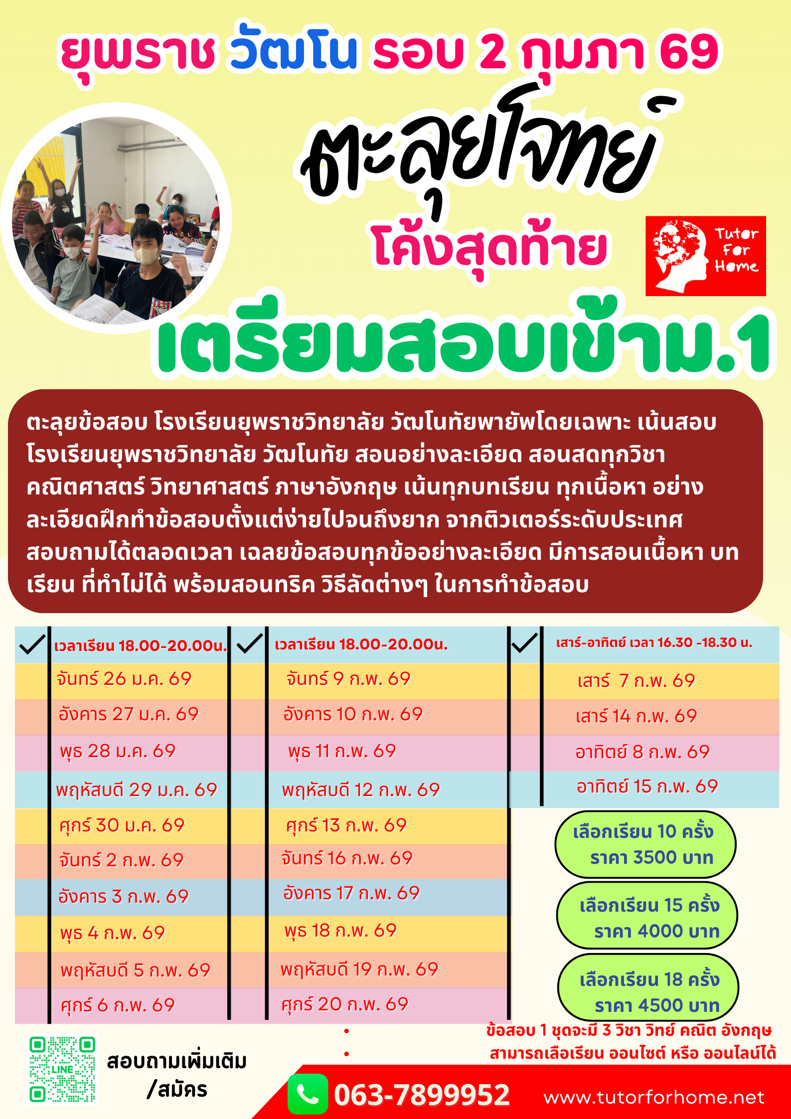 กำหนดการสอบเข้า ม.1 ม.4 โรงเรียนวัฒโนทัยพายัพ รอบห้องเรียนพิเศษ กุมภาพันธ์ 2569