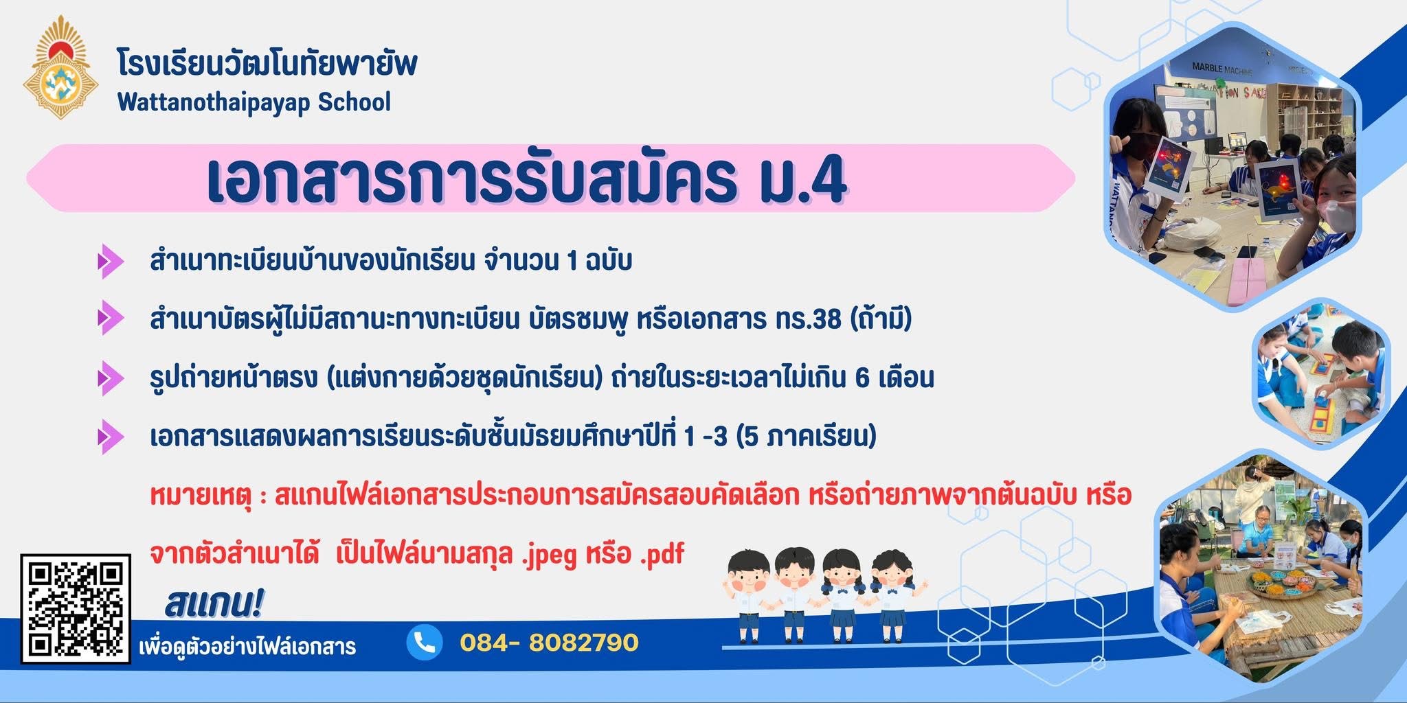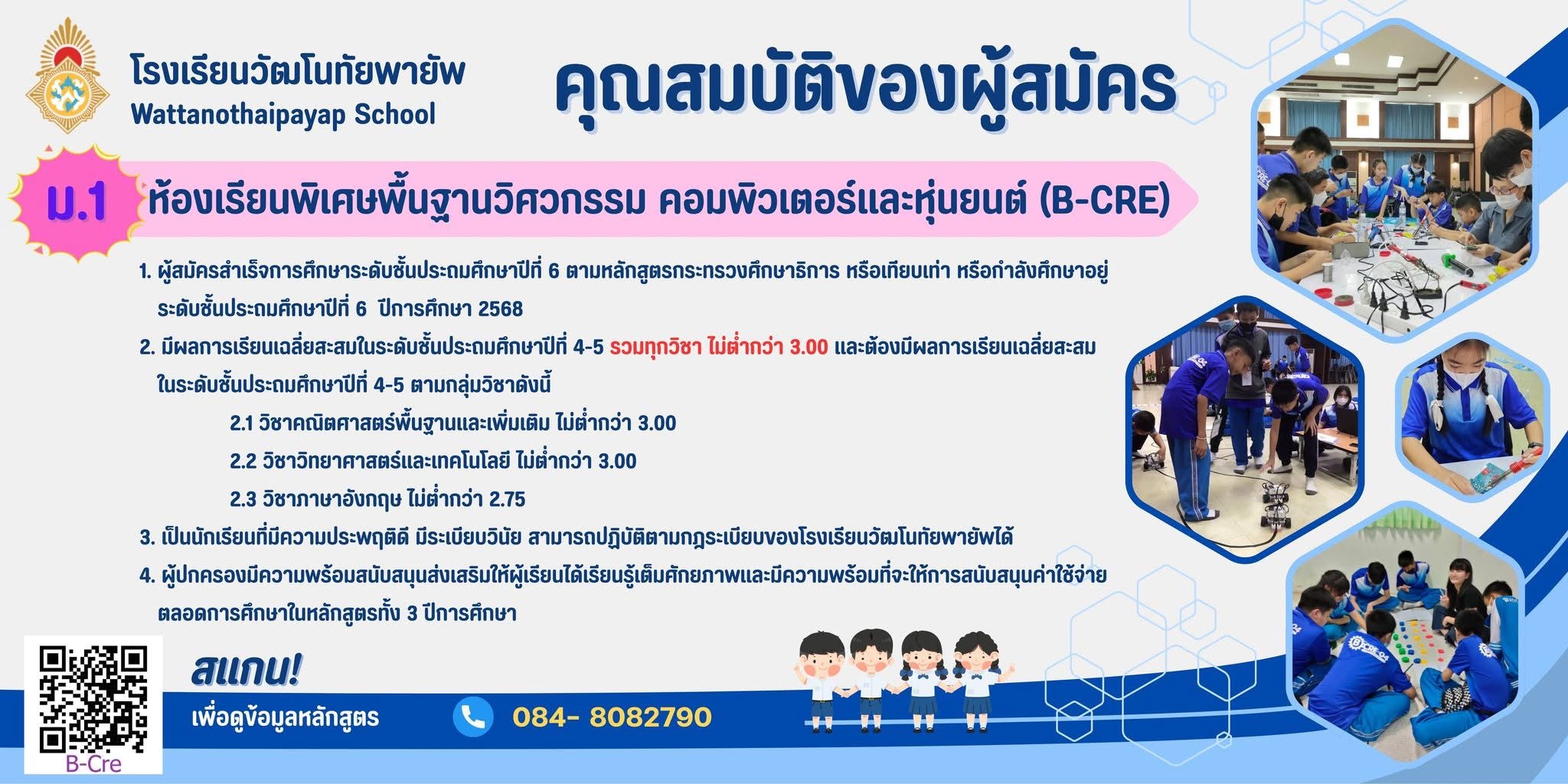 ประกาศโรงเรียนวัฒโนทัยพายัพ เรื่อง การรับสมัครนักเรียนเข้าเรียนระดับชั้นมัธยมศึกษาปีที่ 1 และ 4 ปีการศึกษา 2569 ประเภทห้องเรียนพิเศษ
