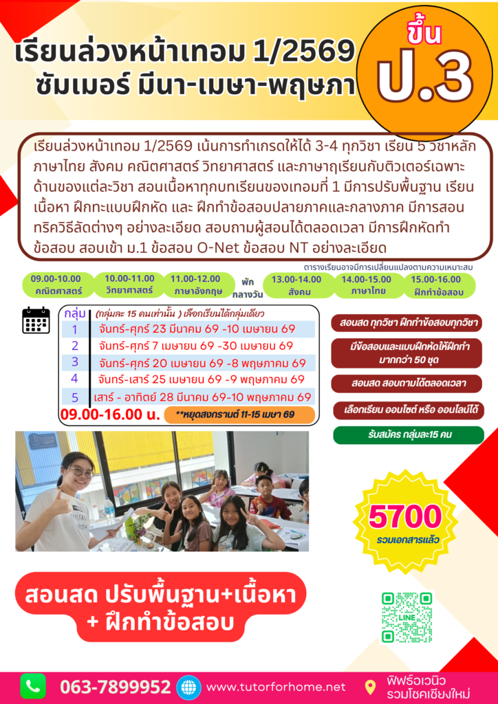 เรียนพิเศษเชียงใหม่ เรียนซัมเมอร์ มีนา-เมษา 69 เรียนล่วงหน้าประถม ป.3-ป.6 เชียงใหม่