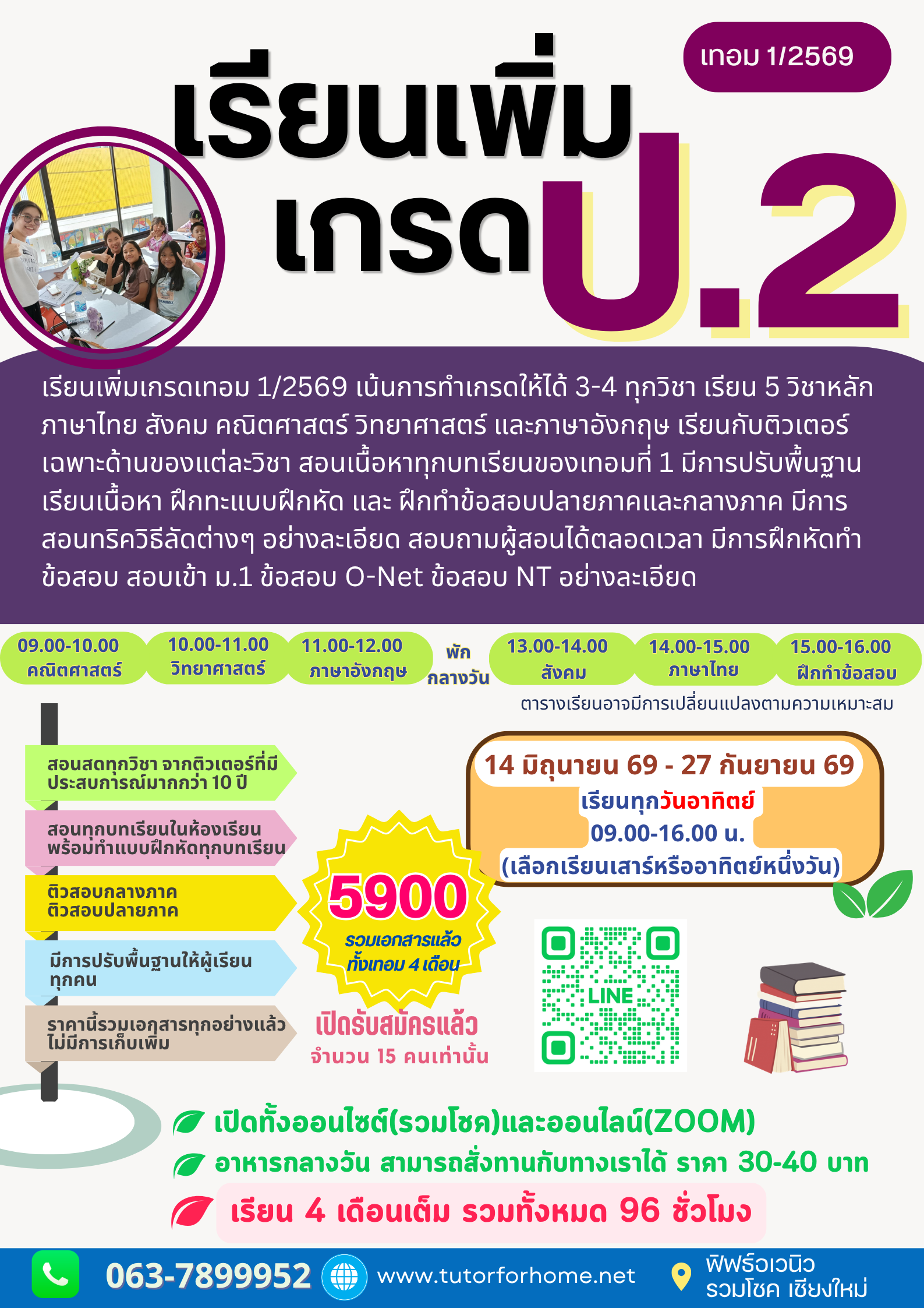 เรียนเพิ่มเกรด  ป.2 เตรียมความพร้อมเพิ่มเกรดภาคการเรียน เทอม 1/2569 แบบทุกรูปแบบสอนเนื้อ หาทุก บทเรียน อย่างละเอียด สอนออนไลน์ผ่านระบบ Zoom หรือเลือกเรียน On-site จากติวเตอร์ระดับประเทศ สอบถามได้ตลอดเวลา มีการทำ แบบทดสอบหลังเรียนทุก บทเรียน พร้อมสอนทริค วิธีลัดต่างๆ ในการเรียน และการทำข้อสอบ อย่างละเอียด