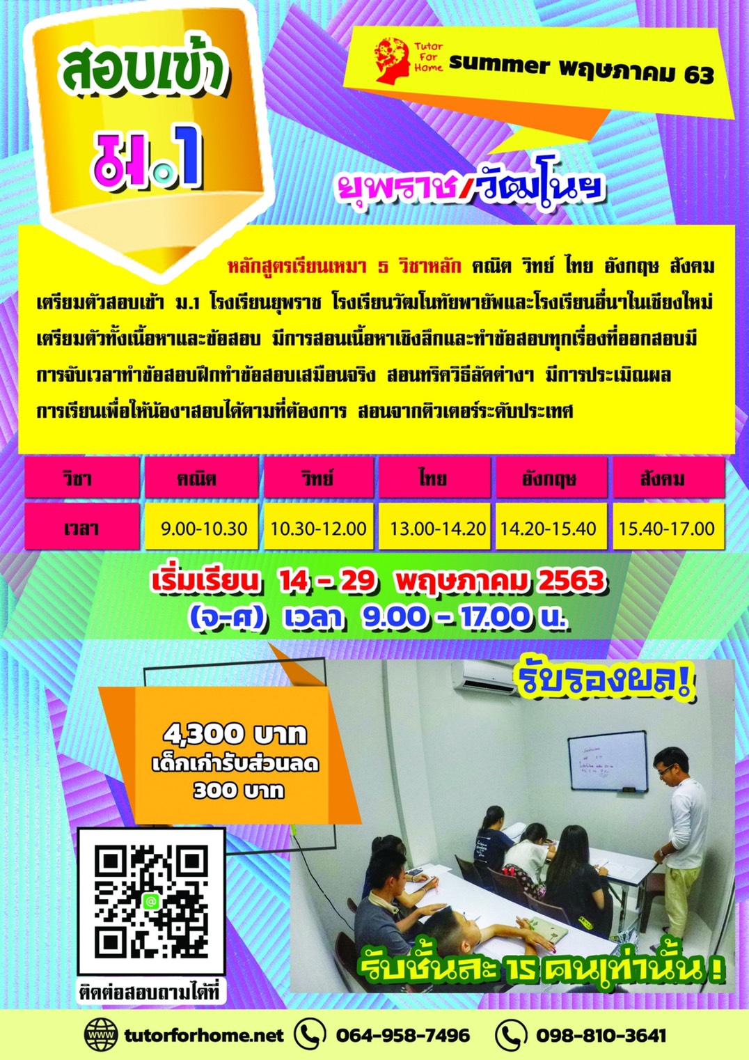 เรียนพิเศษเชียงใหม่เรียนเพิ่มเกรด เตรียมสอบเข้าม.1 ม4 เทอม เทอม1/2568